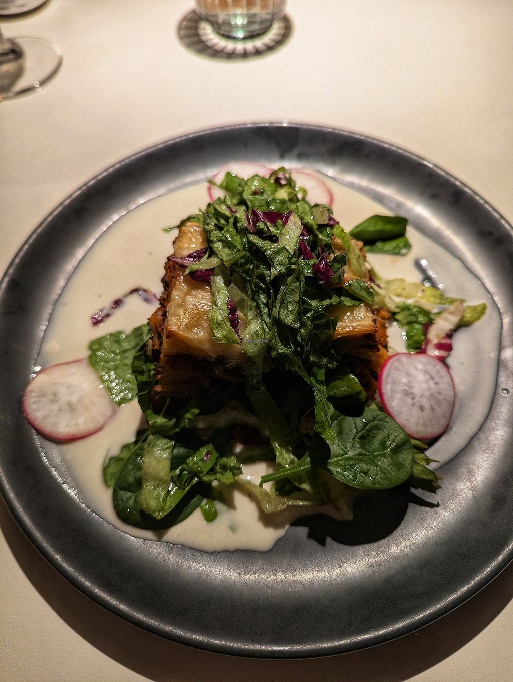 Adorable restaurant in old town Tallinn with very helpful and friendly staff. We split a dish of spreads with crispy toast and a slice of hearty and slightly sweet dark bread native to the area. We also had beet ravioli, which was thinly sliced and nearly melted in my mouth. I also tried a vegan cider, which had a light, crispy flavor.