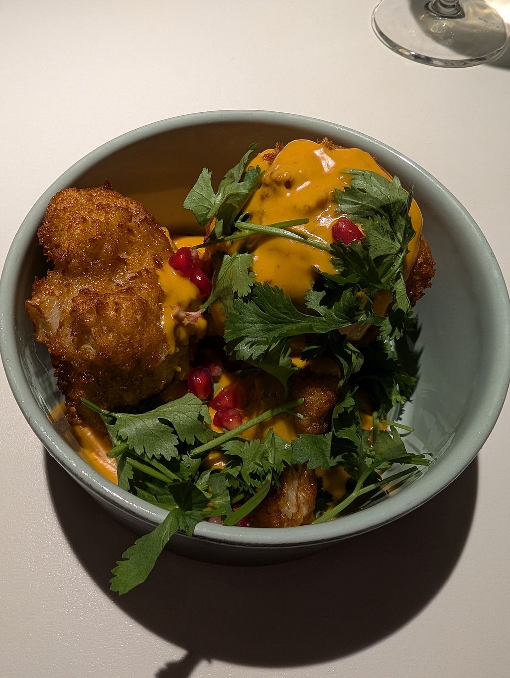 Managed to squeeze in on a Saturday and decided to have the Deep Fried Cauliflower with Mango Chutney/sauce (I think), it was very tasty although one of the pieces of cauliflower was huge and a bit hard in a couple of places, hard to cook something through properly that was the size of almost a cricket ball! Regardless the chutney/sauce was really nice. I went for the burger for mains as I really was craving some fries/chips, the burger was ok nothing special, looking at other menus in town the pea protein burger seems to be the one of choice. The chips/fries were oven chips which was disappointing to be honest, especially after the meal I had the other night here. It's not difficult to have triple cooked chips on the menu or even some home made fries, oven chips out of a bag is a bit lazy considering the rest of the menu. 6.5/10.