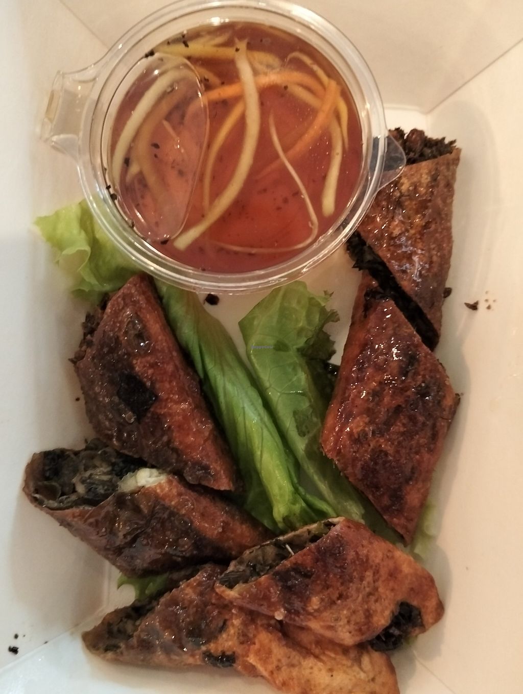 The spring rollos in the menu show 4...like every where but was burned pieces! And the curry was like a soup...totally liquid...so liquid that was for take away...and never arrive home! In the bag was swimming!