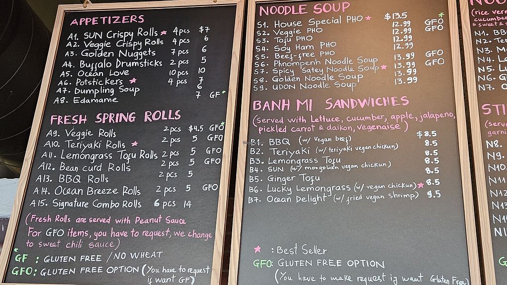 Vegan sun is very good. We usually order teriyaki rice bowls, noodle salads, and banh mi sandwiches and it is always really delicious!