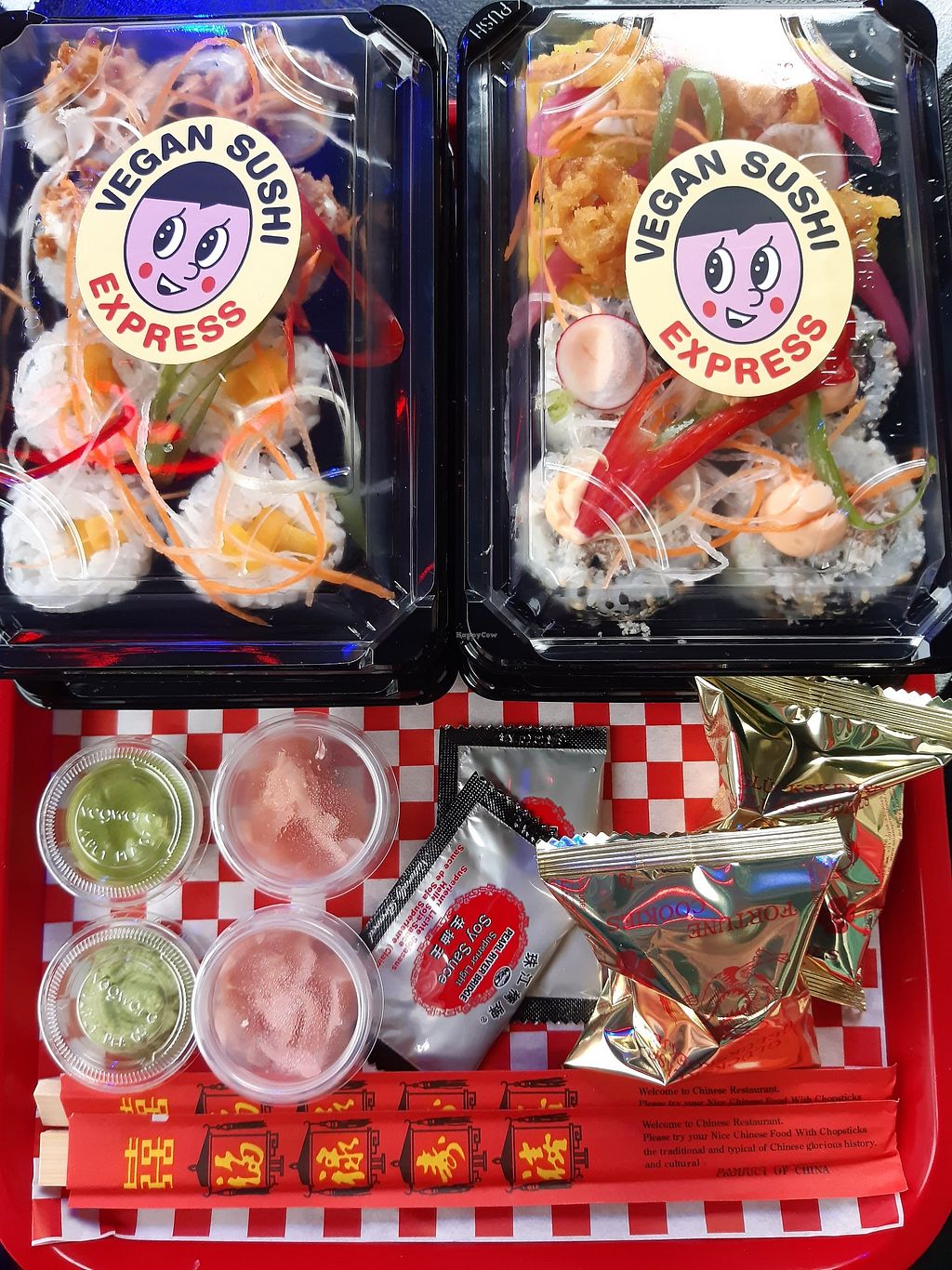 The vegan sushi was delicious! I ordered a rainbow Maki box and everything was good about it.