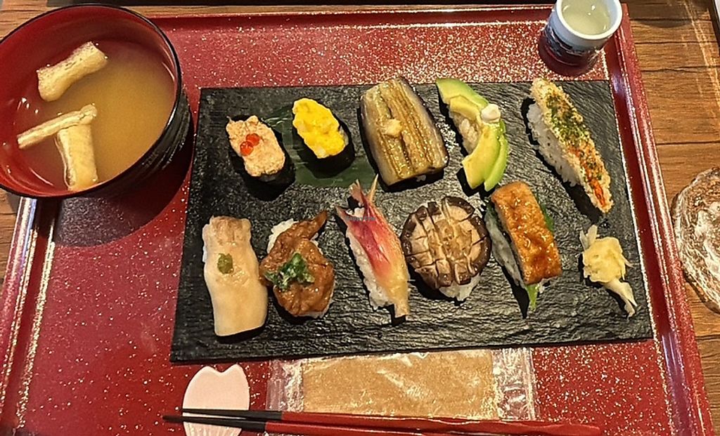 This is the best vegan sushi I’ve ever eaten. The vegan caviar and scrambled egg are so realistic. The staff is so sweet too. We loved it.