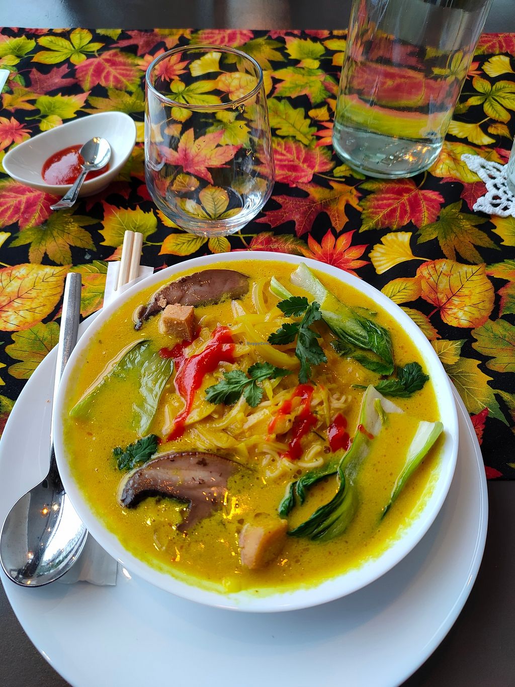 The restaurant is well-located in the old center Bryggen of Bergen and has a nice interior. However after carefully studying the options on the menu card, we opted for one of the two quiches and one of the two Ramen soups. (Being no big fans of the usual junk food burgers or pizza which by now you get almost anywhere even in a vegan version.)