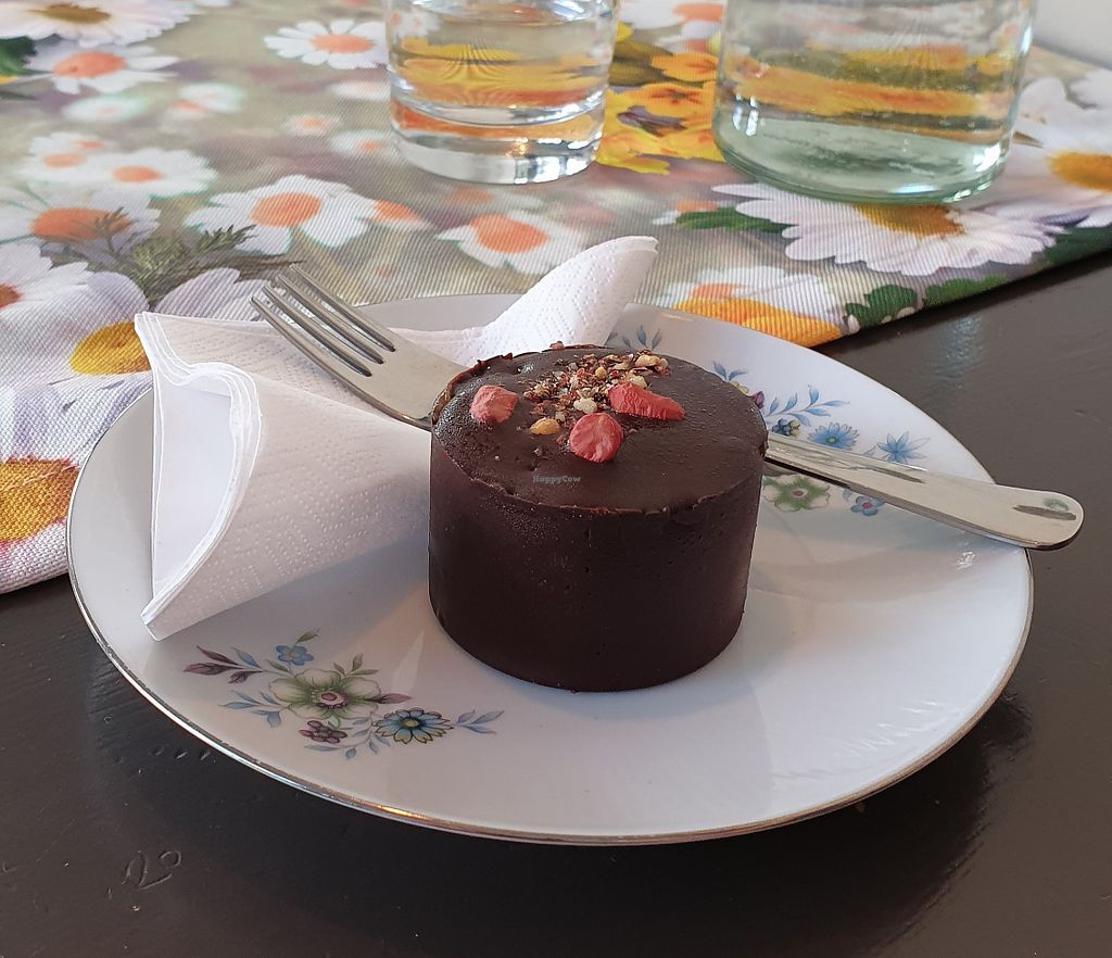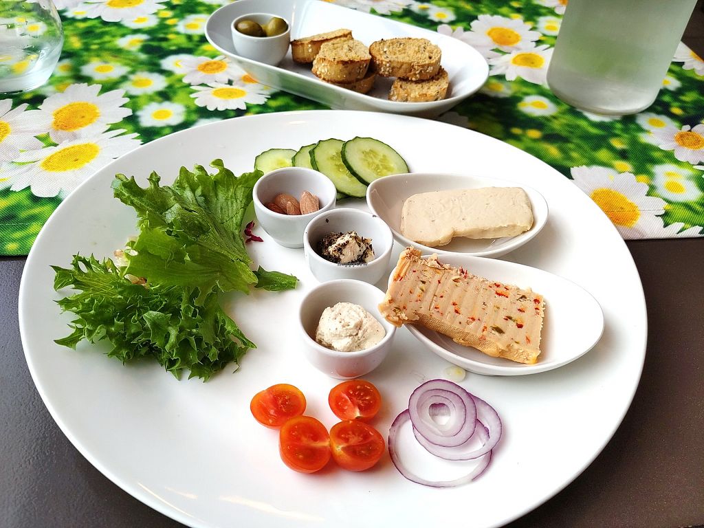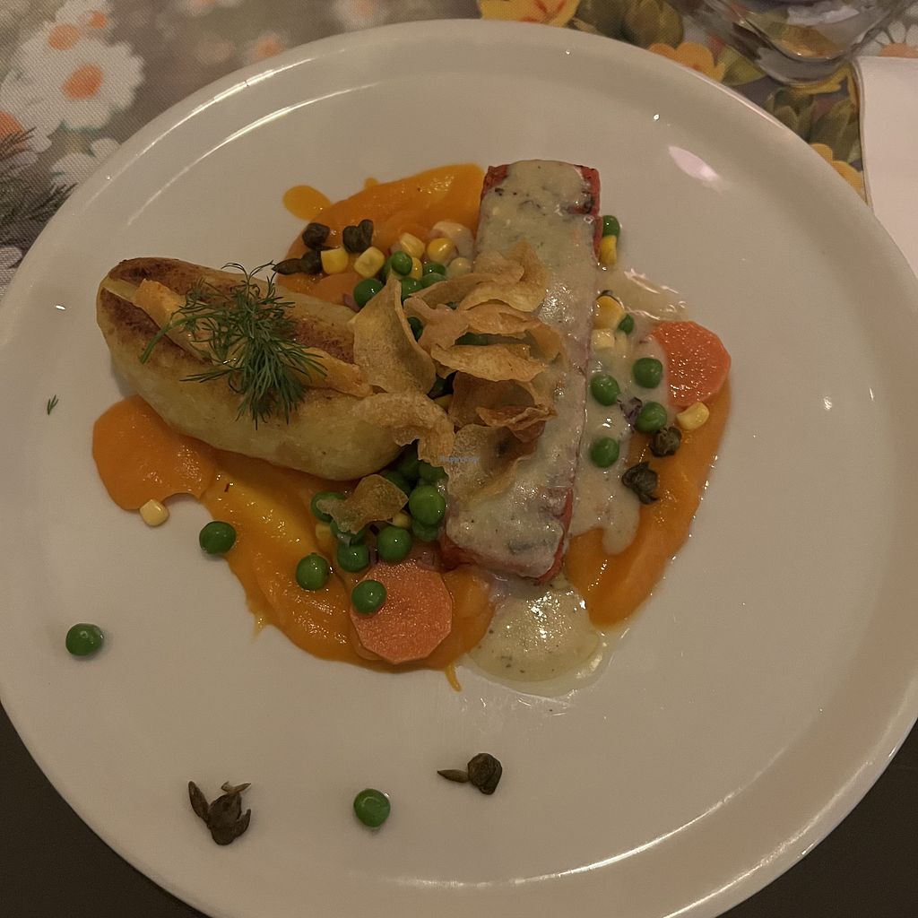 Stayed here for dinner. I had the salmon terrine as a starter. It tasted really good and it was very close to sensation of real smoked salmon. As the main course I opted for the roasted salmon. Although the taste of this dish was great it reminded me more of cod than of salmon. For desert I had a tiramisu cake and an espresso. The cake tasted wonderful, although it reminded me more of a coffee cake than tiramisu. The staff was friendly and I even had the opportunity to speak with the chef. I appreciate what he is trying to do with the food and I think with a little more experimentation and trial and error this might become a 5 star vegan restaurant. I just wish the food was a little more filling.