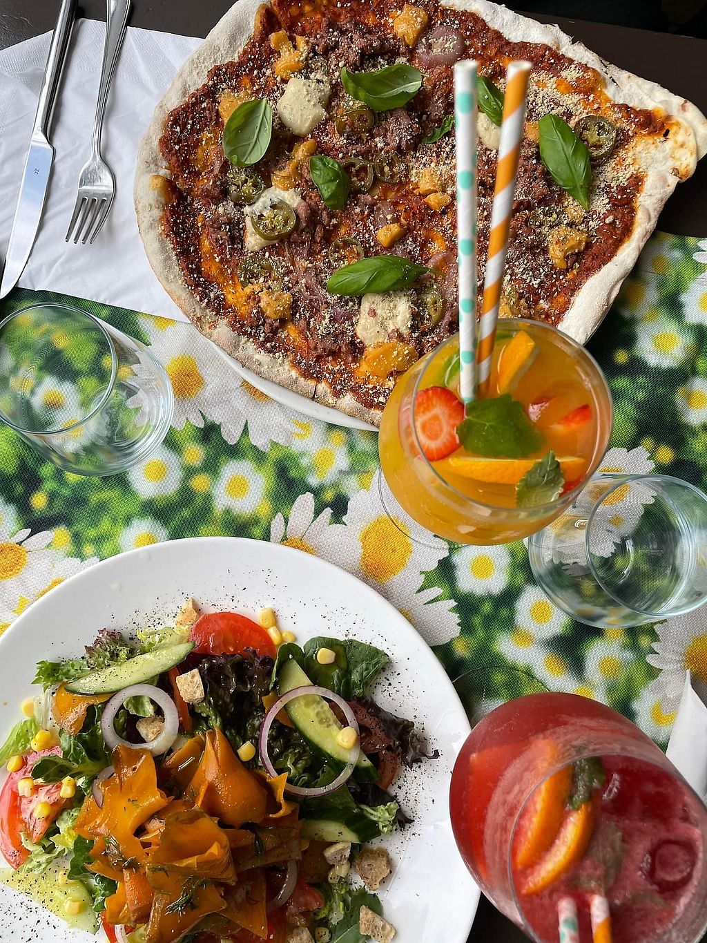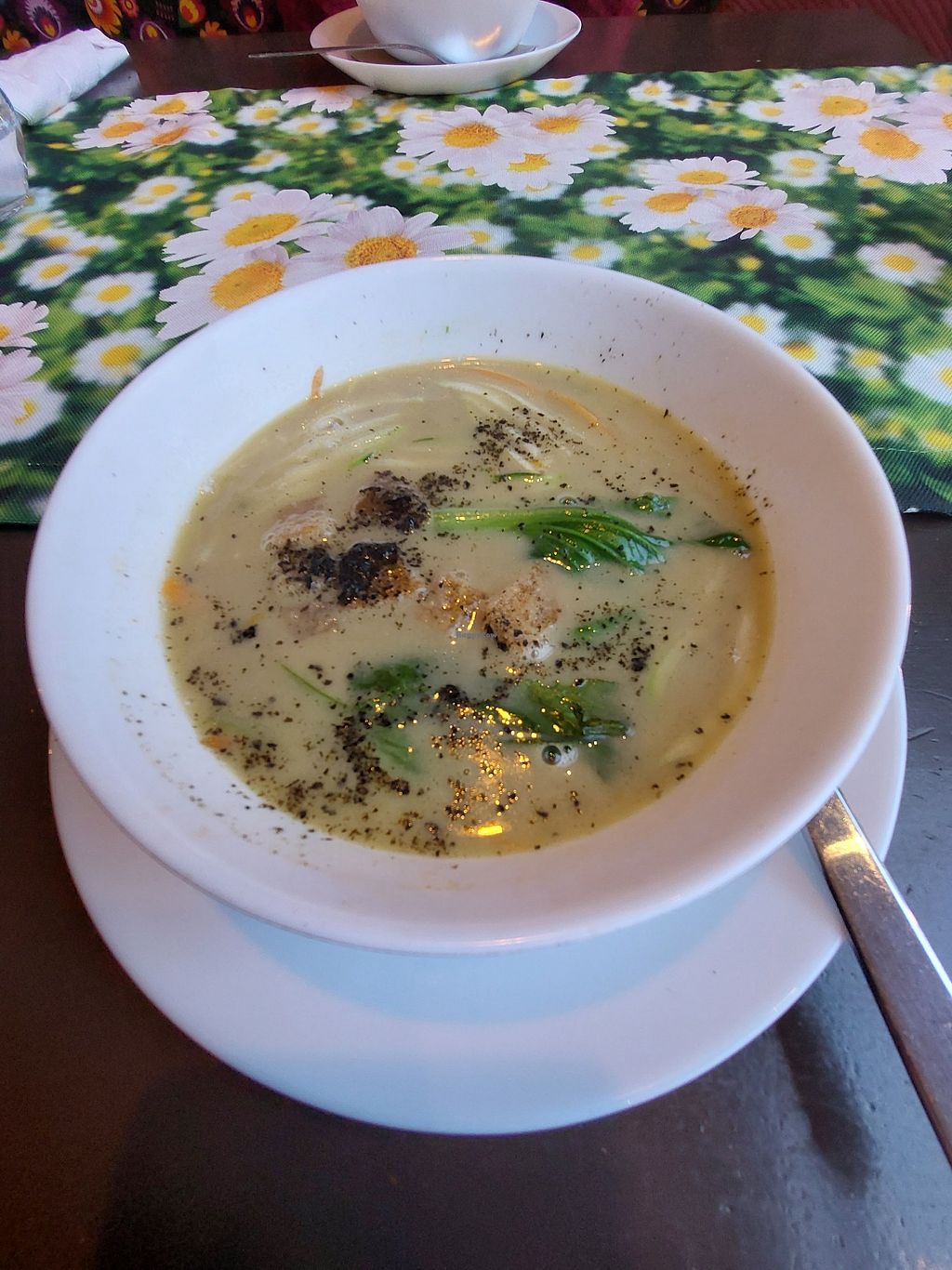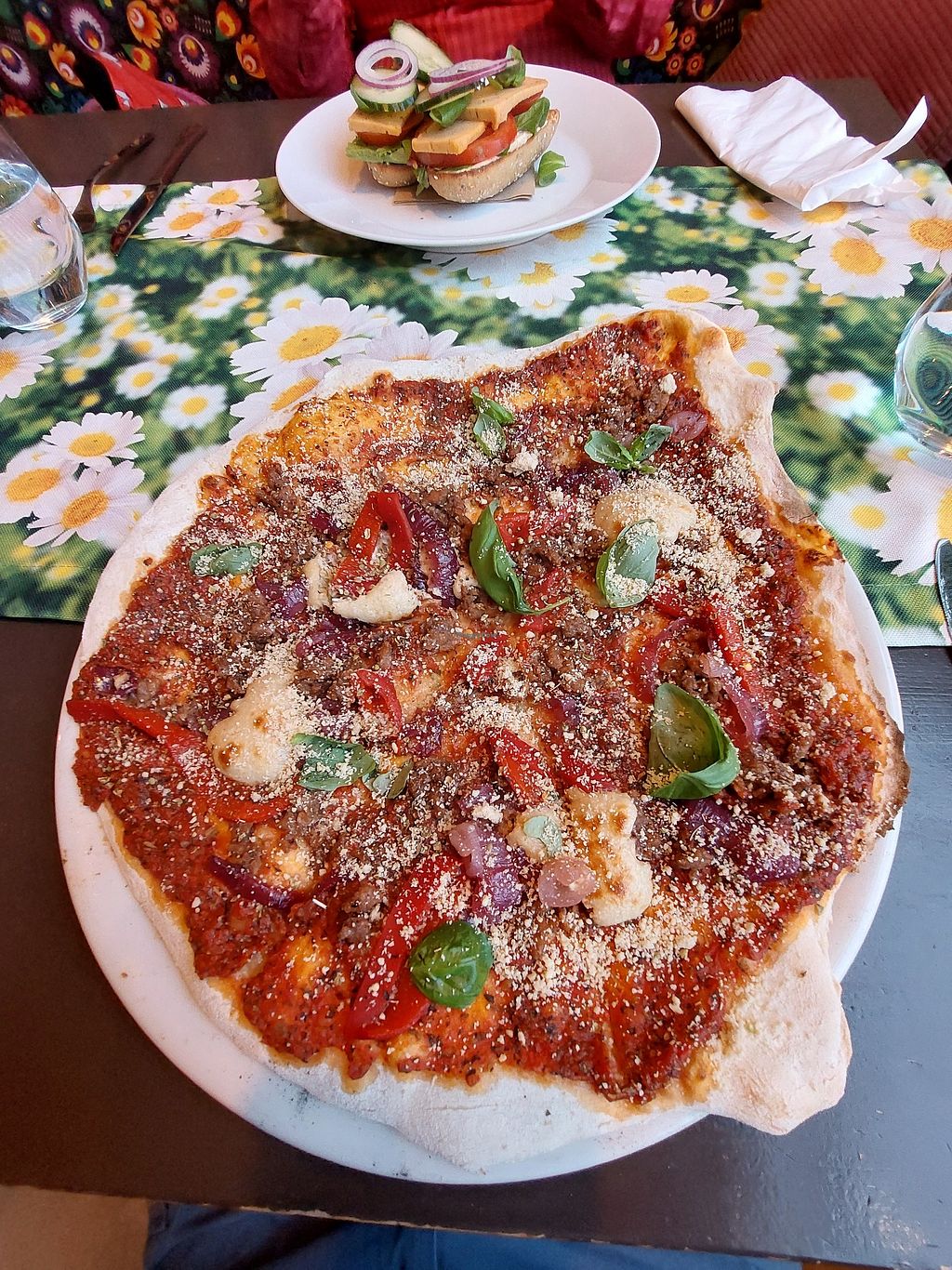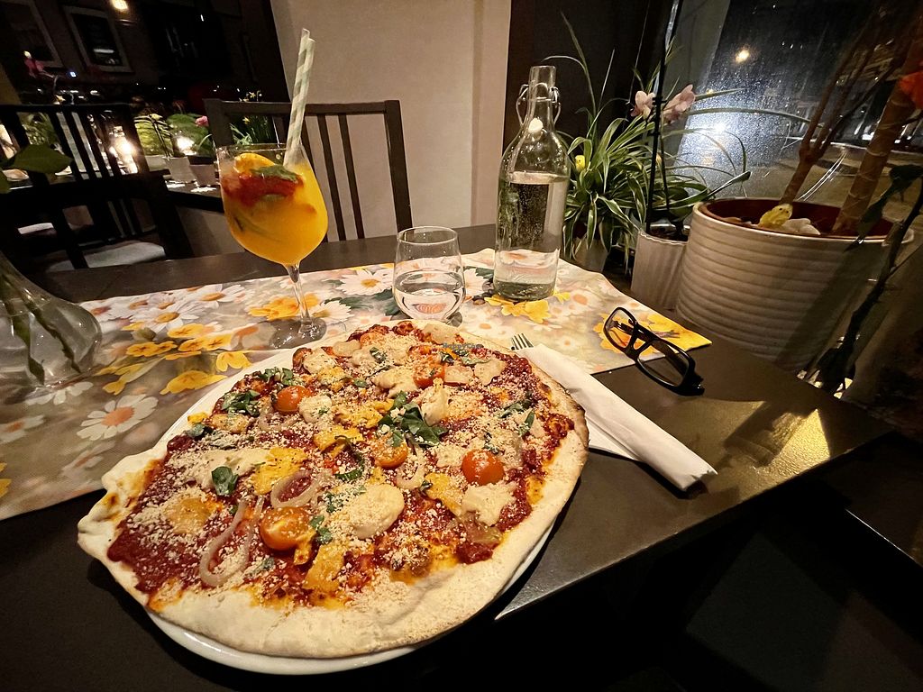 Had the fishsoup, pizza with marinated "beyond meat" and the tiramisu cake. All very good. Nice waiter and very nice little restaurant.