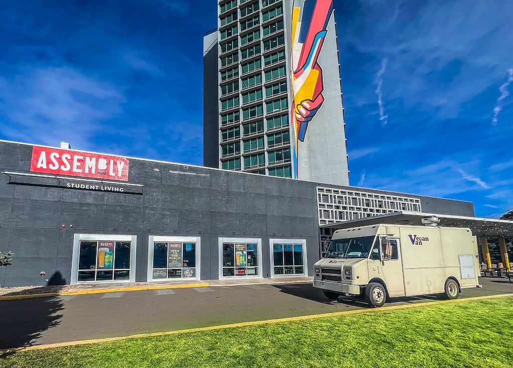 Buffalo tofu wrap with broccoli cheddar & chicken noodle soup
