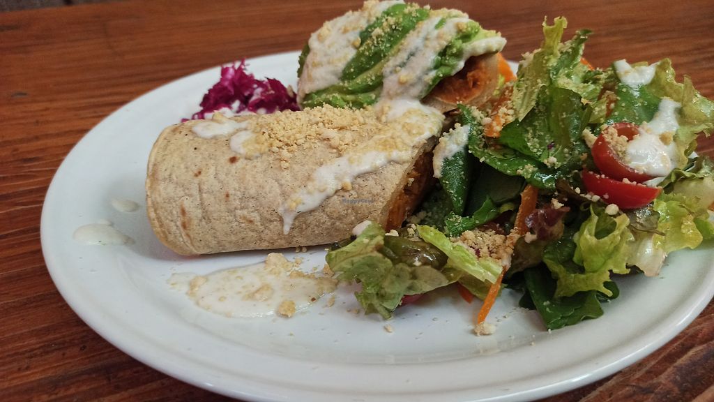 Garbanzo bean chorizo burrito (filling, but flavorless)