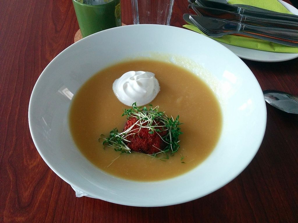 At lunchtime you pay just under 9 euros for a main and a nice soup. I …