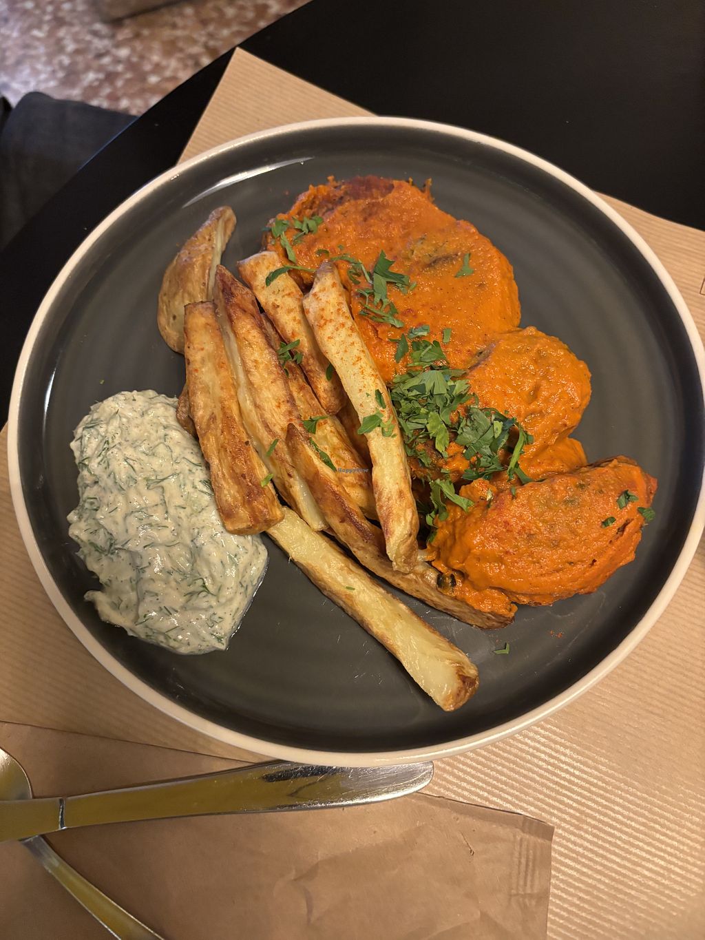 Read moreI had the Veganaki Special, which came with an amazing vegan Feta, Salad, Fries and some Mung Bean Patties. And my friend had the Vegan Moussaka. Both of them were really yummy.