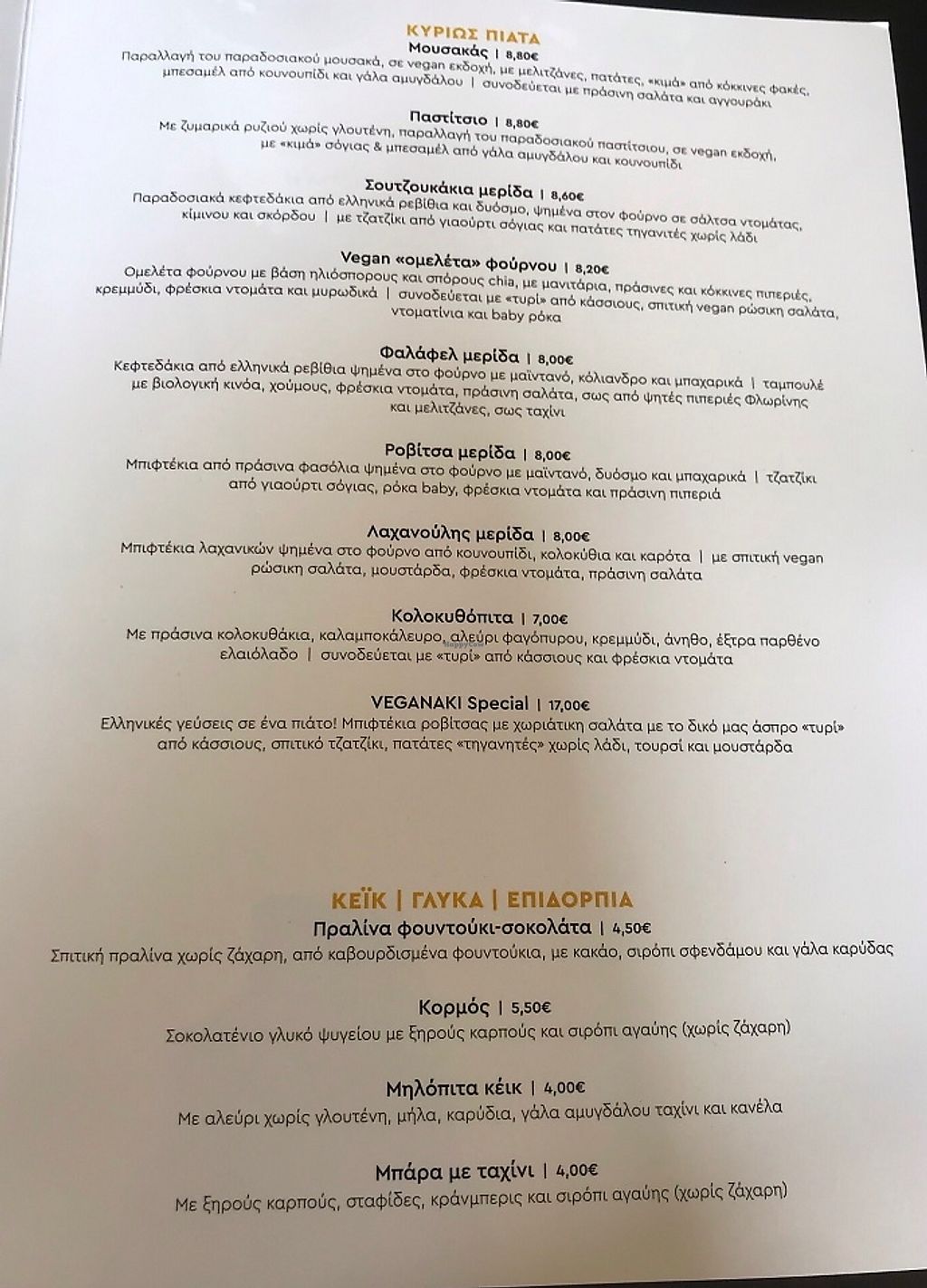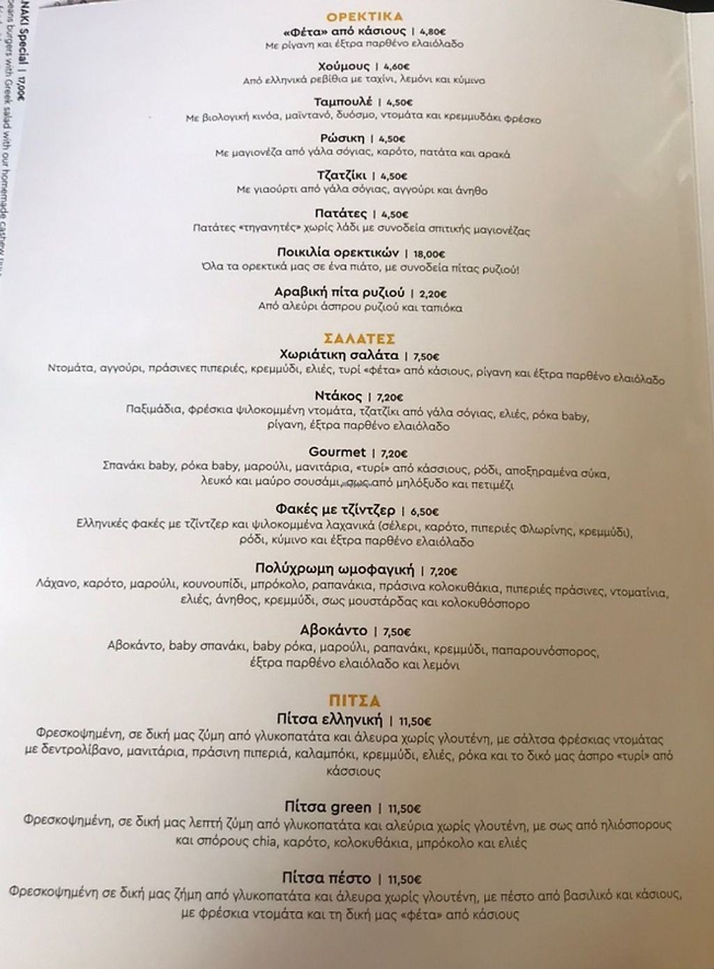 Menu in Greek