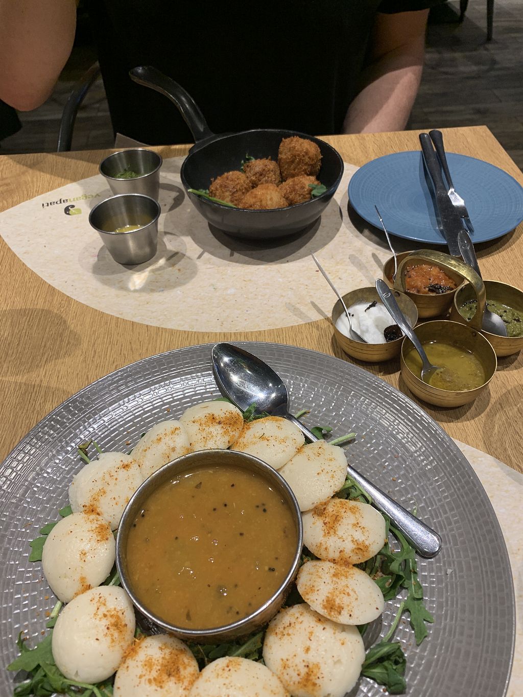 Idli and smoked ‘sausage’ croquettes. Delicious