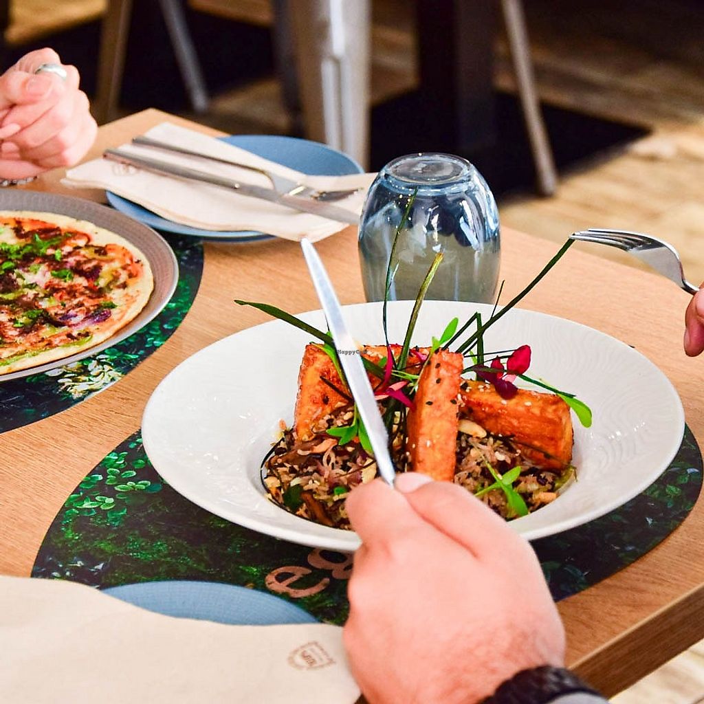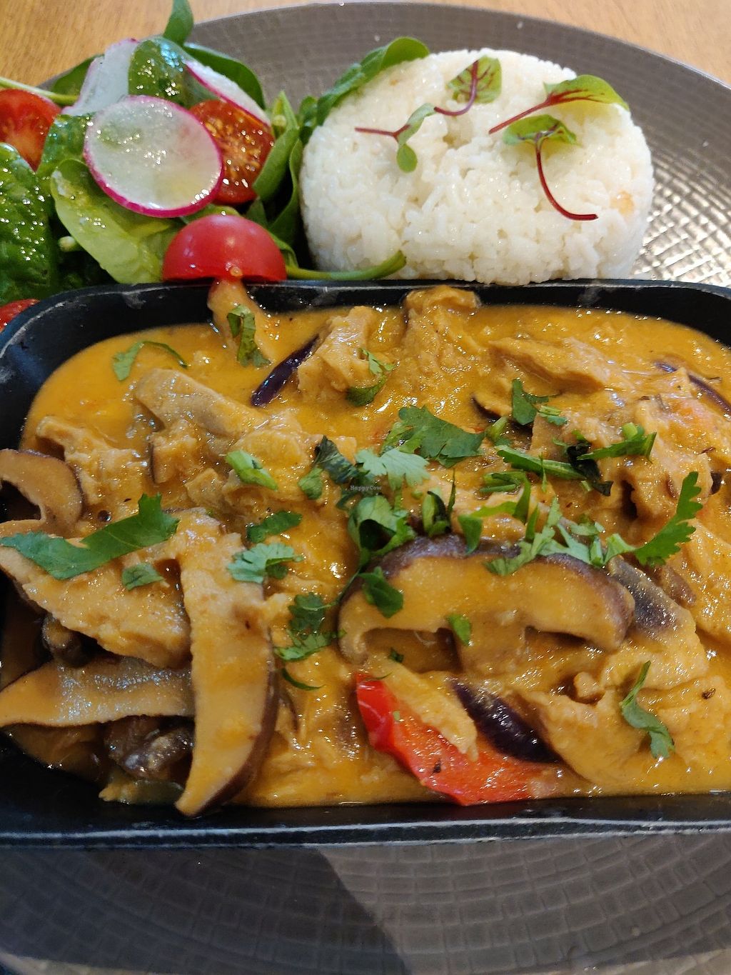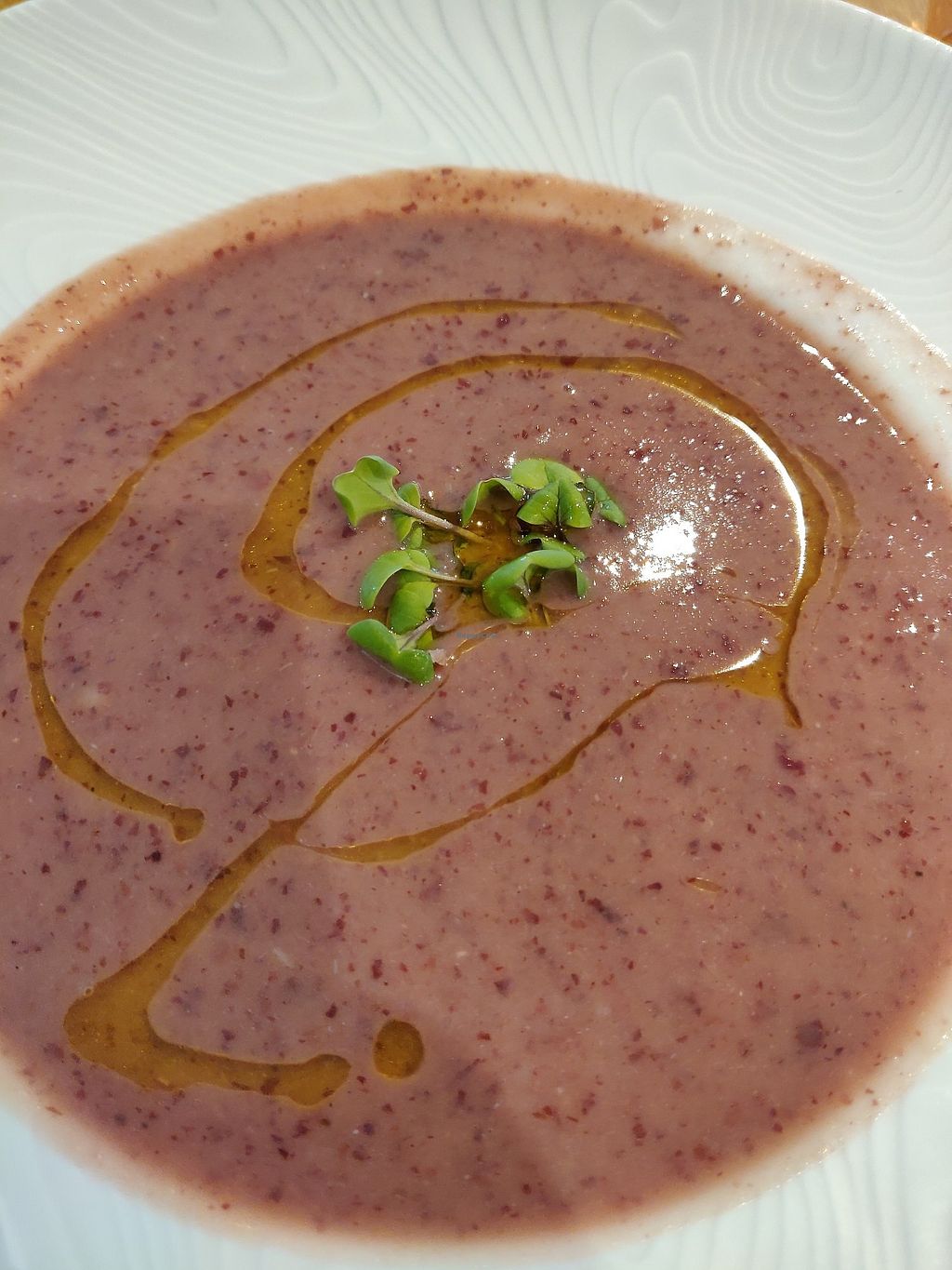 Brownie Burger with sweet potato fries and beetroot ketchup