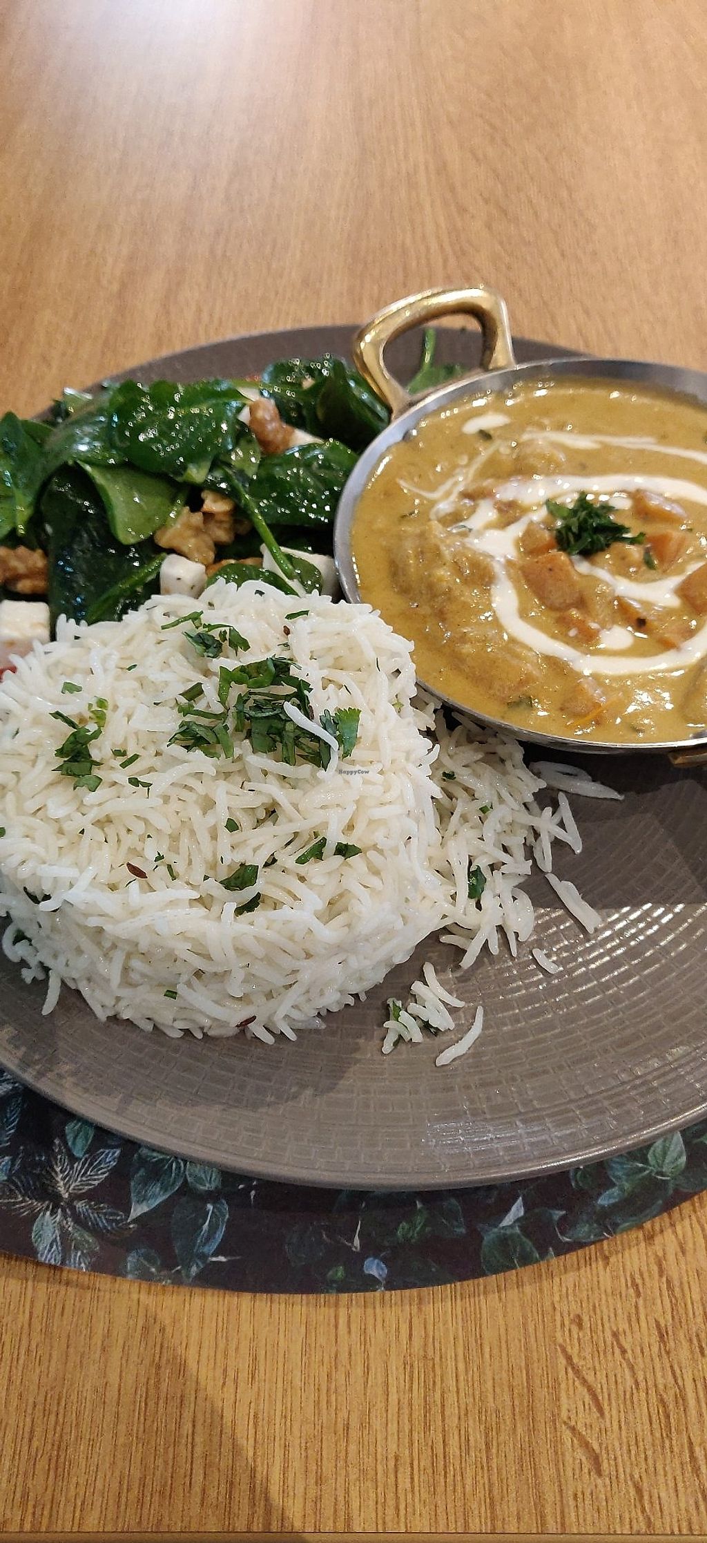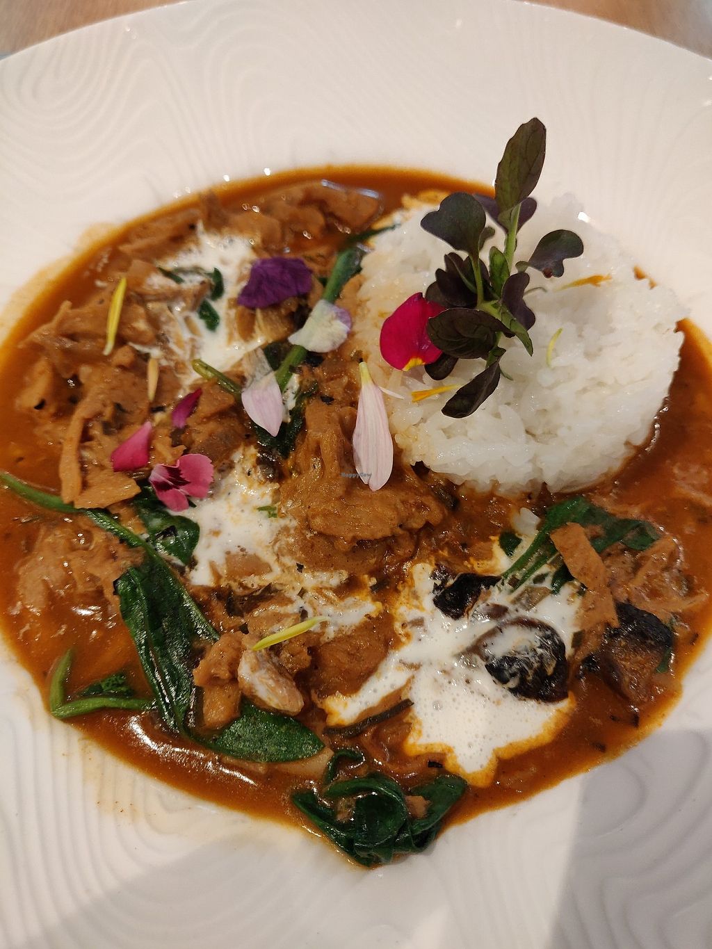 Tofu bio plate (tofu, green curry, slow-cooked pineapple and rice), ve…