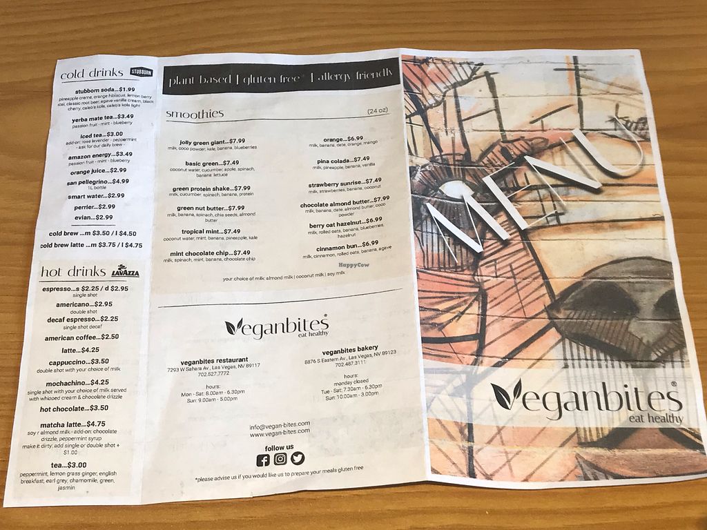 After wandering aimlessly around the touristy strip section of Vegas, we headed to Vegan Bites and were greeted by a case full of delicious options. On top of all of the baked goods they had a full menu worth of meals, and coffee options.