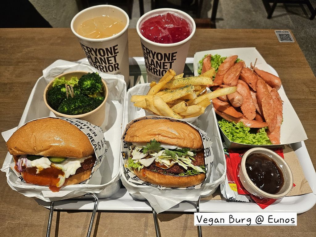 Recently renovated and reopened branch of Veganburg! Ordering can be done at the kiosks outside or over the counter. Indoor and outdoor seats available. Delicious vegan burgers, which earned praise from my non-veg family and seemed significantly tastier than the ones I had at the Woodleigh outlet. Would also recommend the Carne Asadas Fries. I've seen some influencers posting about a media event in which they could assemble their own mini sliders; would love for this fun activity to be available to the public too (cute family activity or date idea!)~ For the religious folk, the menu is clearly labelled to indicate which items contain alliums or can be customised to become allium-free. Wish they would use less disposable cutleries and containers though. A little pricey, but worth supporting if you're in the mood for fast food. Also full of local pride for the founder Alex as VeganBurg is the world's first fully vegan burger joint (since 2010)! 5-10min walk from Eunos MRT Station.