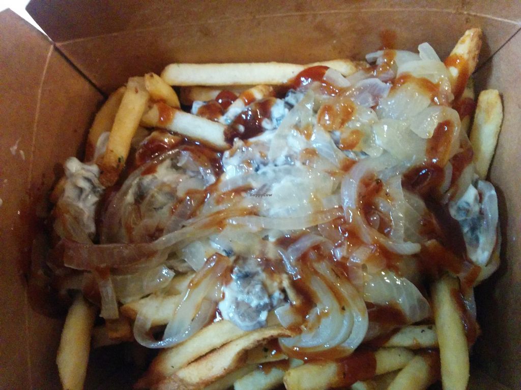 Loaded shroom fries; fried topped with sauteed mushrooms and onions in…