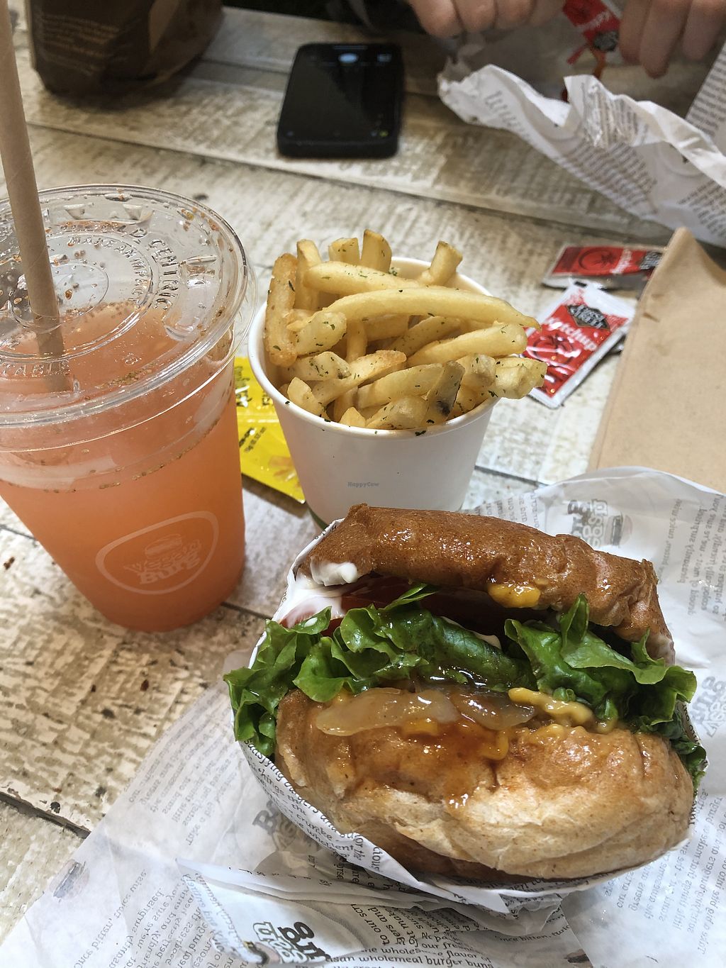 BBQ burger, strawberry lemonade, fries