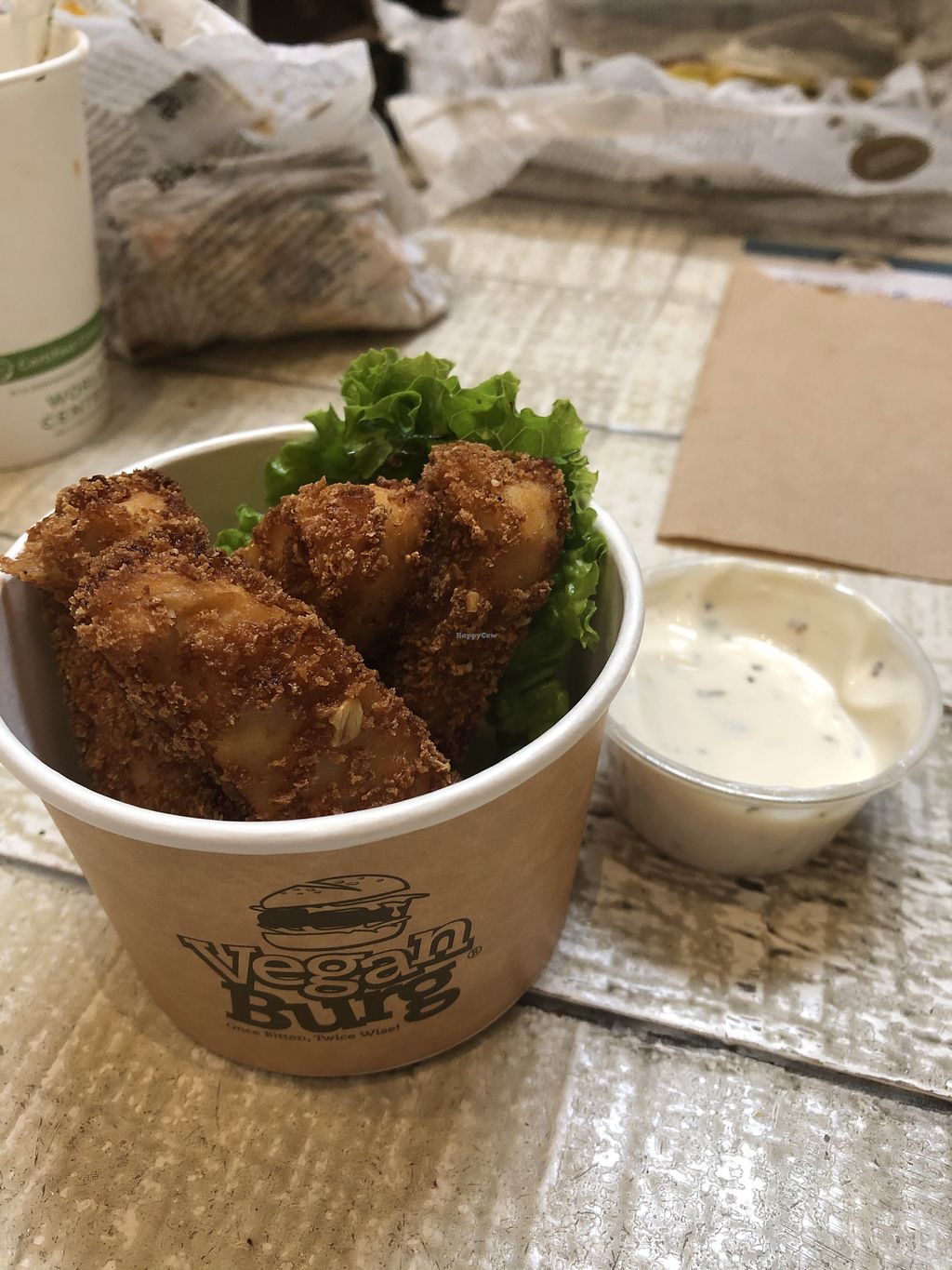 Chick’n Tenders (orange sauce is sriracha aioli)