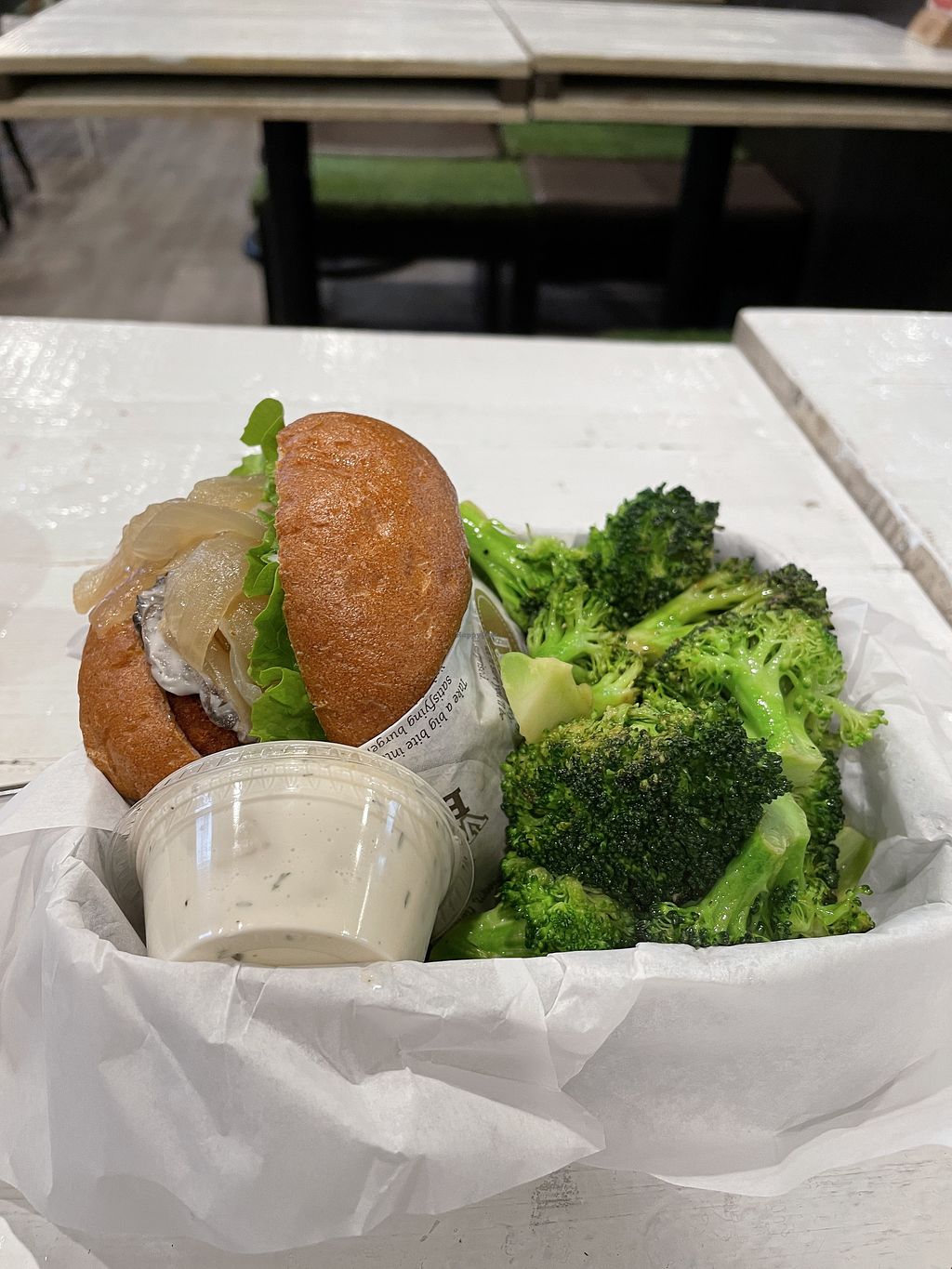 Broccoli and creamy mushroom burger