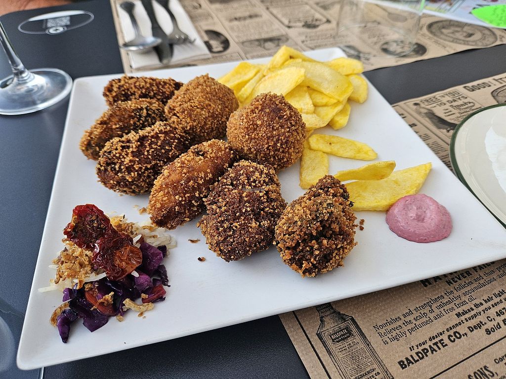 Pros: Croquetas, Nice surprise to find vegan options in the area