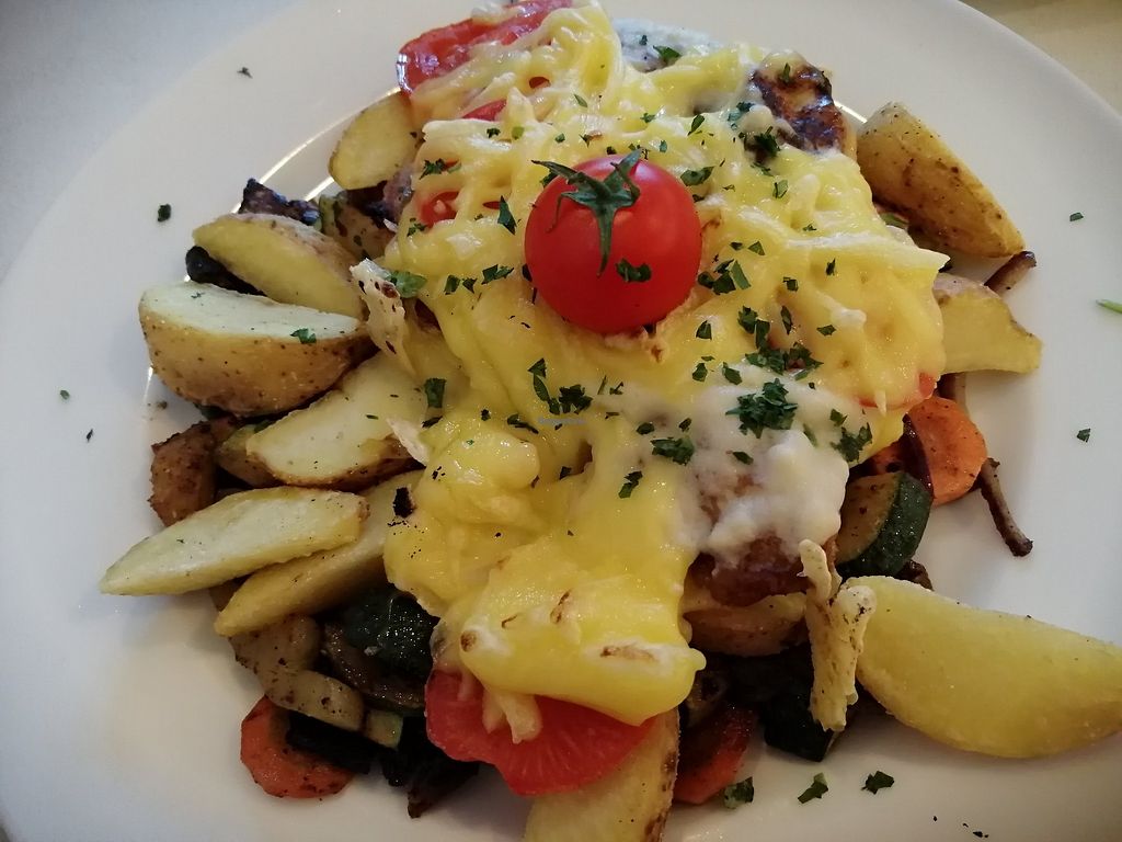 Seitan roasted with potato, vegatables and cheese