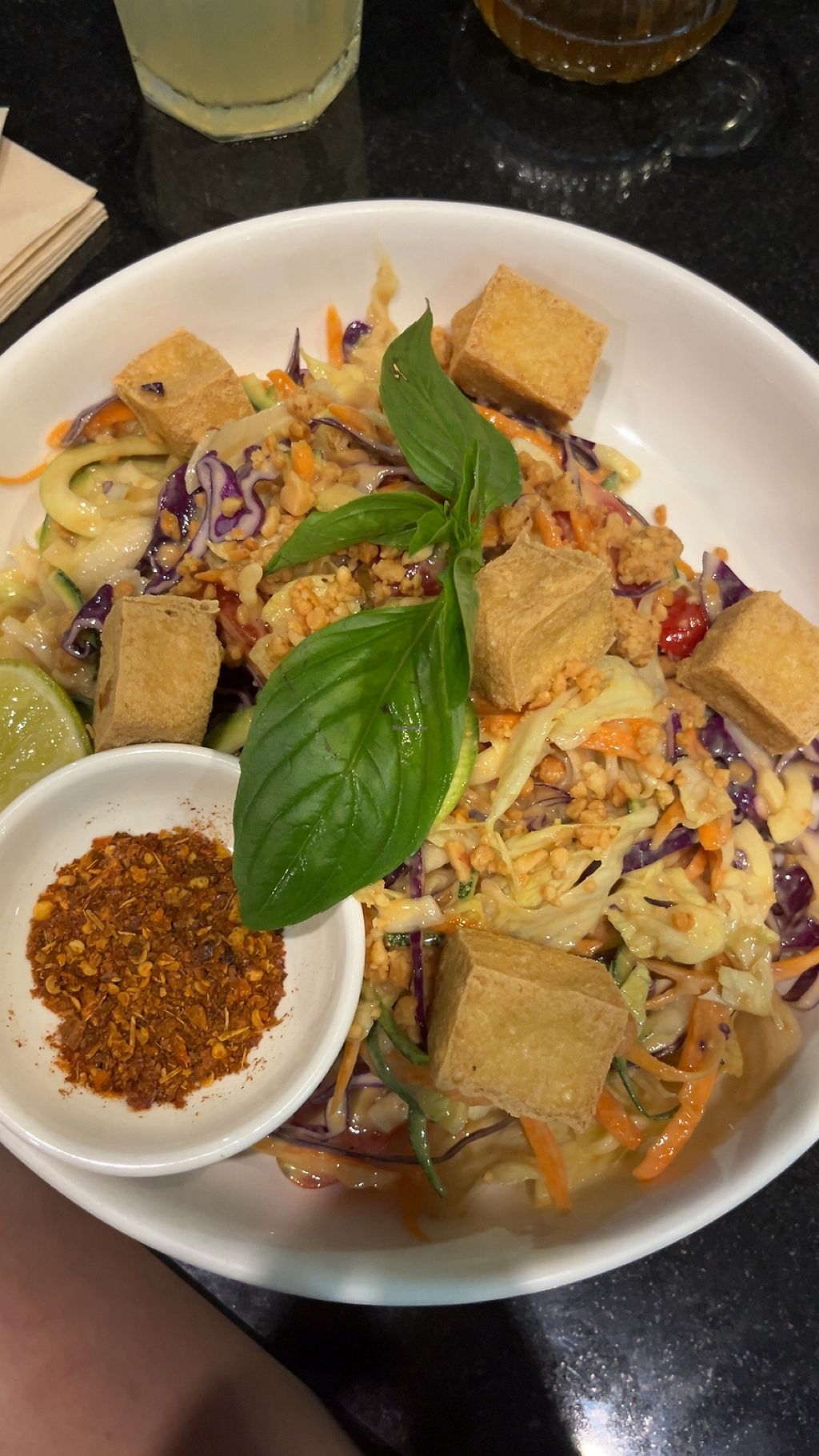 I had the khao soi and som tam. The khao soi was okay, tasty enough, but no vegetables; the som tam was the blandest I’ve ever had, it seemed like they put the ingredients in a bowl and stirred, definitely not smashed in a mortar and pestle.