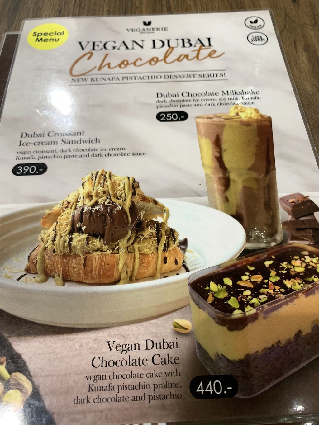 i always make sure to eat at veganerie at least once whenever i’m in BKK—but this is definitely their best location! it’s smaller than the others but the food was extra good and the place was so clean. also, try their dubai line! i got the dubai ice cream croissant which was literally an experience. it was decadent!