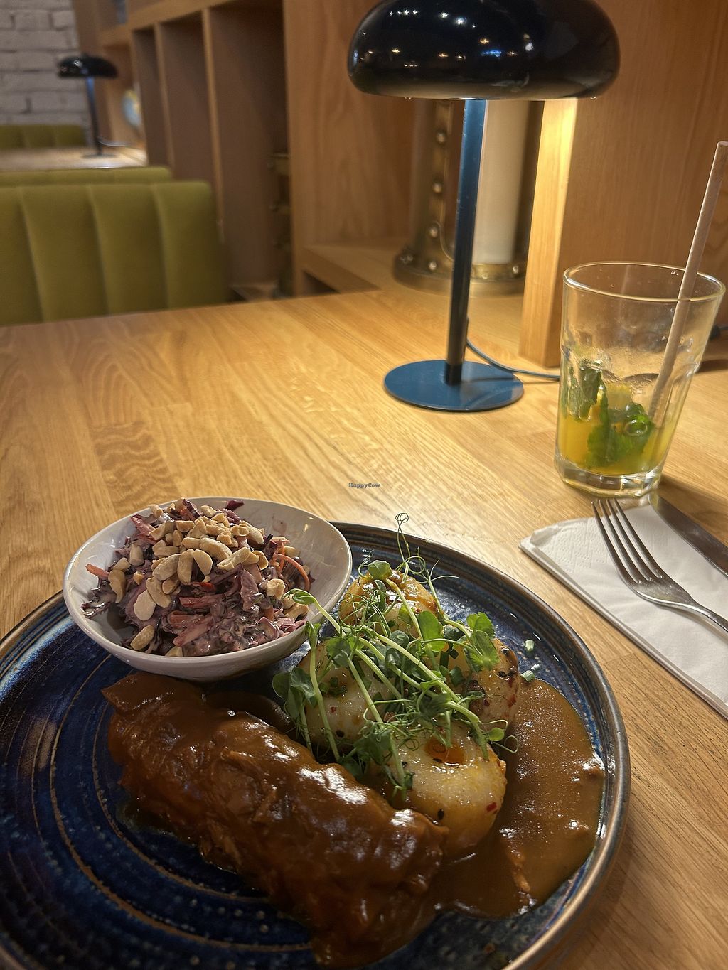 I had a really delicious roulade with potato balls and a nice cabbage salad with peanuts. The staff was friendly and the interior really cozy and spacious.