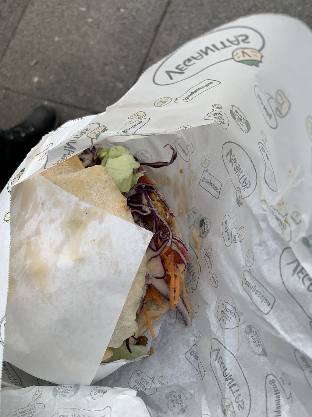 Read moreEverything here is made with consciousness and love. Being vegan is not a simply commercial slogan at Veganitas. In the contrary, Veganitas transforms the love, compassion and awareness of a vegan into the high quality “fast” food. The food is eaten by us in a few minutes, but it takes hours for the restaurant to prepare. The tempee, for example, is home made and the pita bread is freshly baked. What’s more, the amount of filling is always generous. Sometimes I wonder if it’s possible for the pita bread to contain as much fillings.