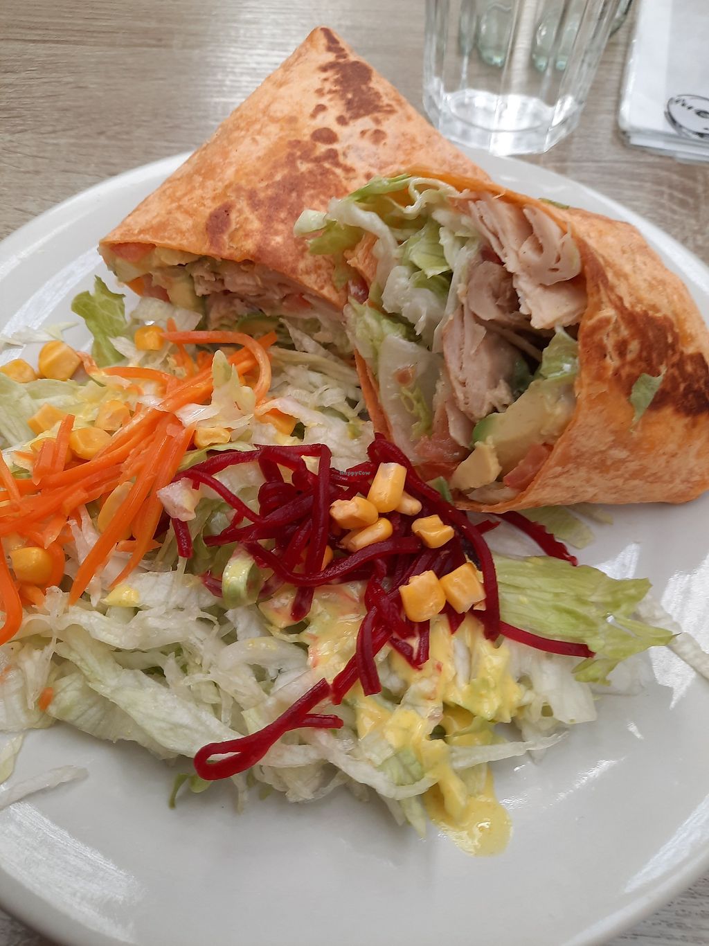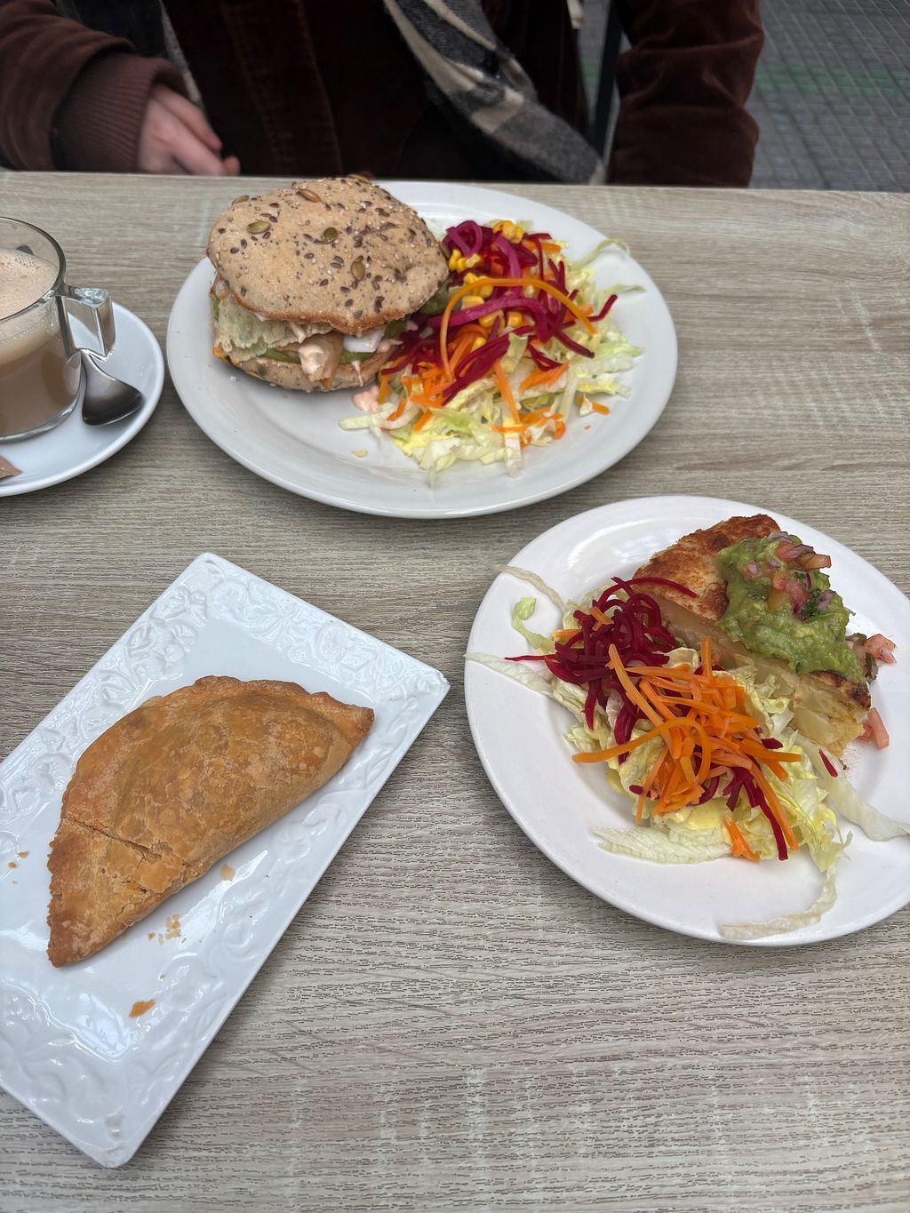 The food was very good and they have very fair prices! We paid about 35€ for 3 main dishes and 3 drinks. If you're very hungry the meals might be a bit small tho, you should think about getting some tapas or an extra salad as well in that case. I had the "Green" wrap, the fake chicken in it tasted great and it goes really well with the avocado😄I also had a lemon pistachio cookie as a dessert and I loved it!
