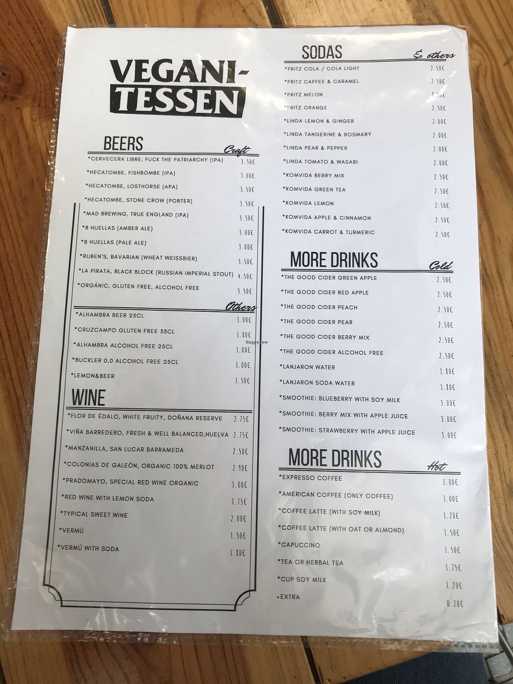 Drinks menu