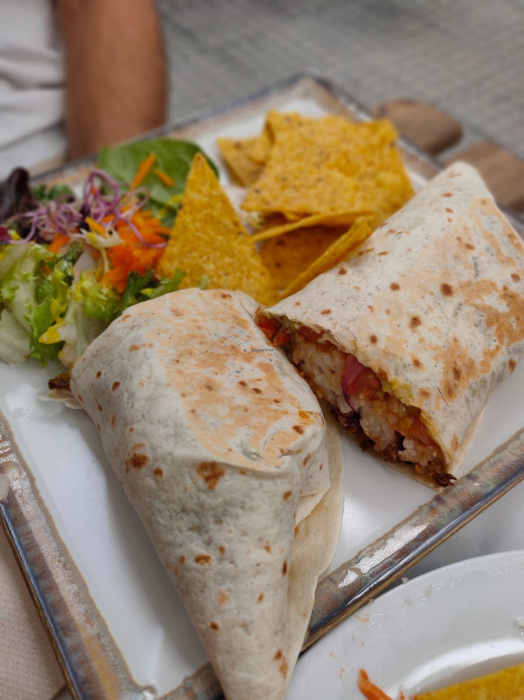 Tortilla with vegan egg and vegan bacon