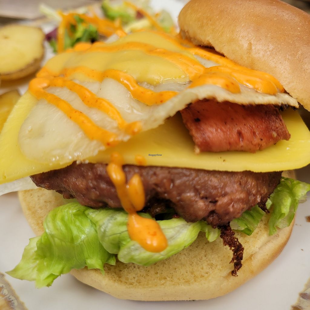 Egg & bacon vegan burger