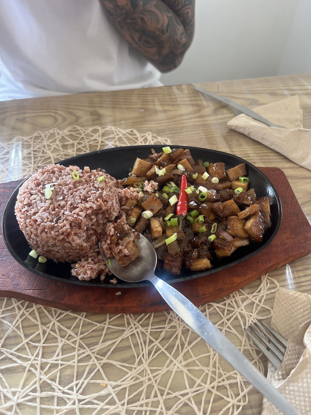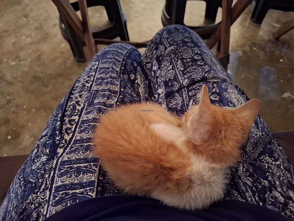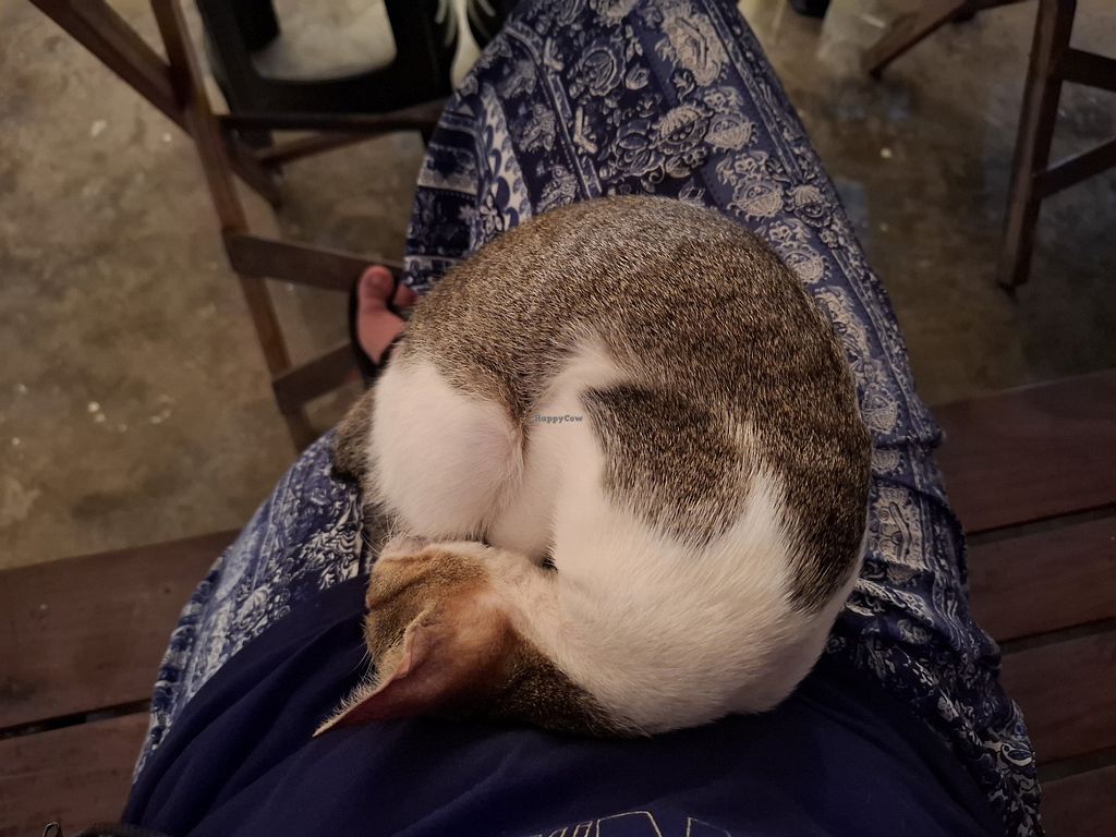 Amazing vegan food. We ate the vegan Sisig and chickpea curry with rice and it’s was sooooo good! I really recommend this place and also they have two rescue cat and one of them is a little kitten. Super cute and friendly❤️
