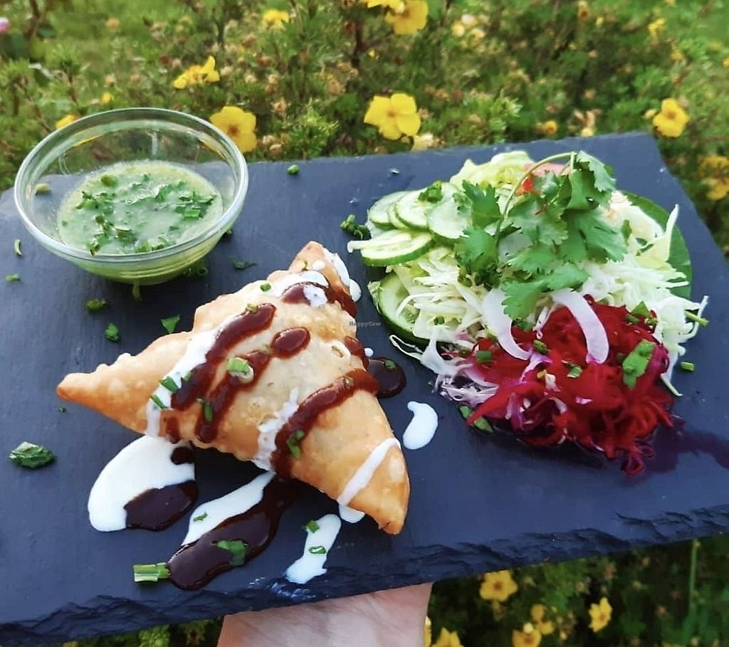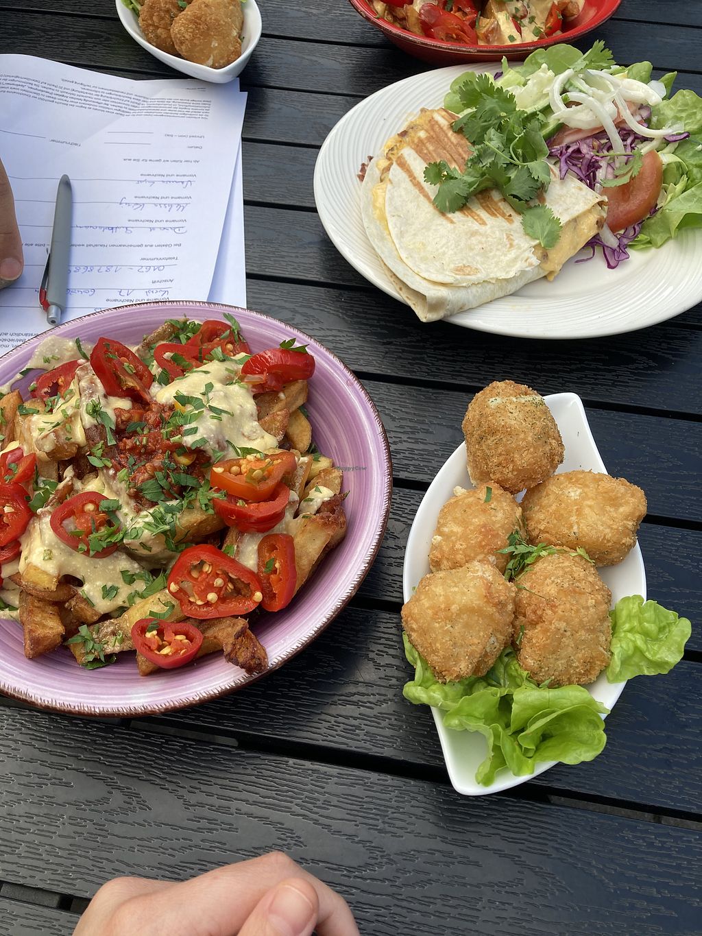 Vorspeisen Mix/ veganer Käse mit Preiselbeeren / Pommes /paniertes Hän…