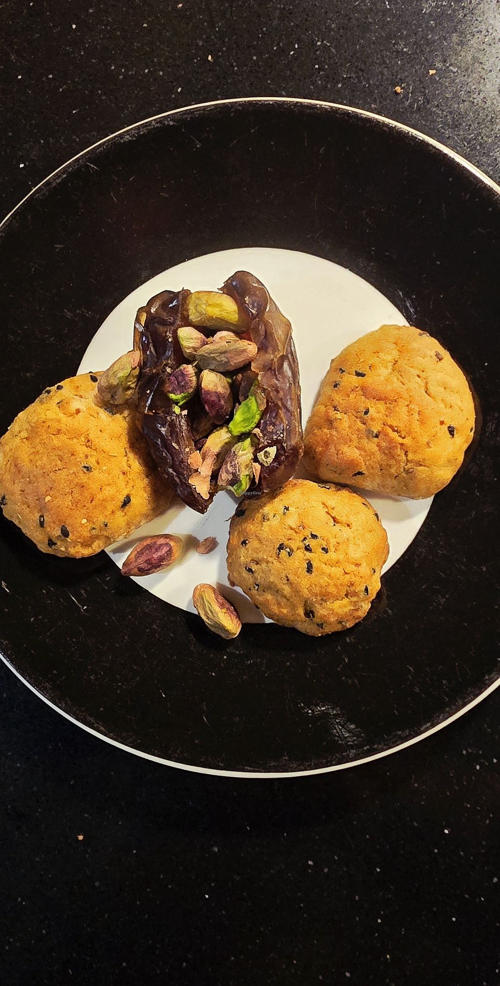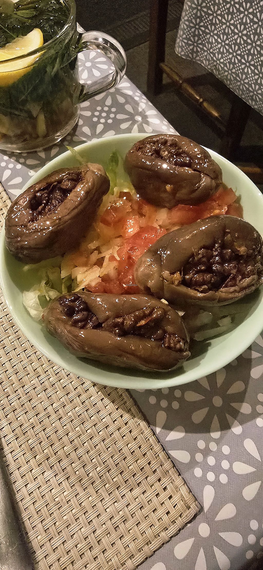 Part of the mixed grilled plate including vegan kebap and schawarma