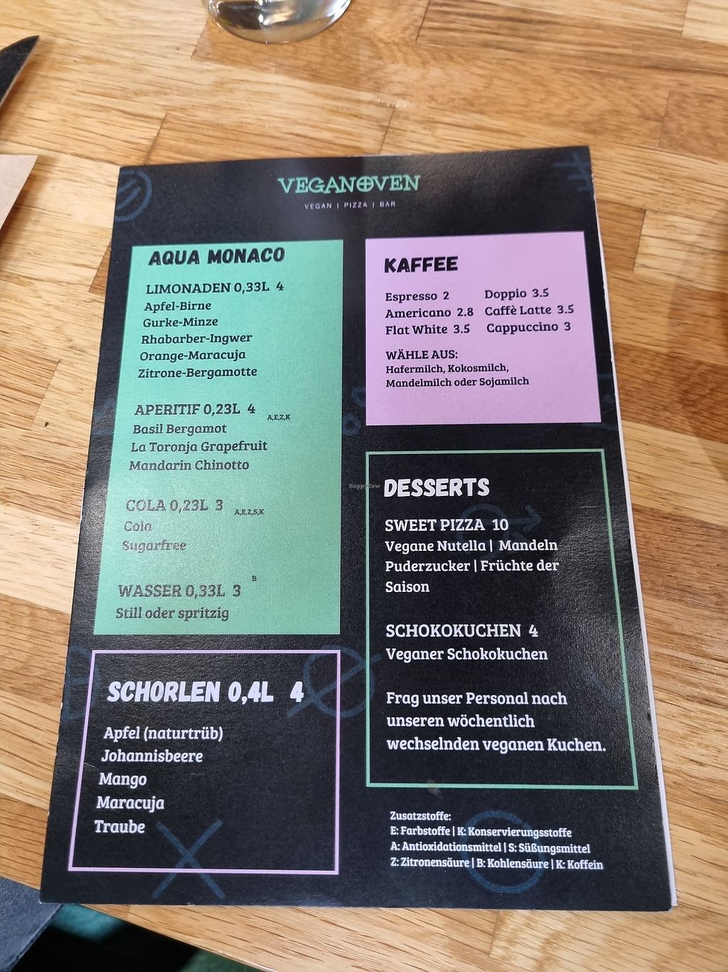 Drink menu