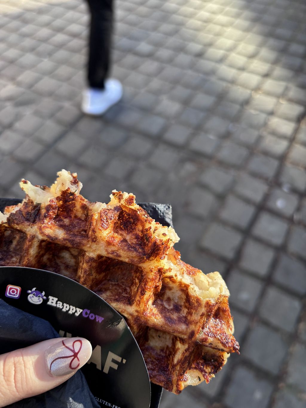 You have a few vegan waffles restaurants here only. This is the only one with savoury waffles. All are potato based. You can choose the "toppings" like you want.
