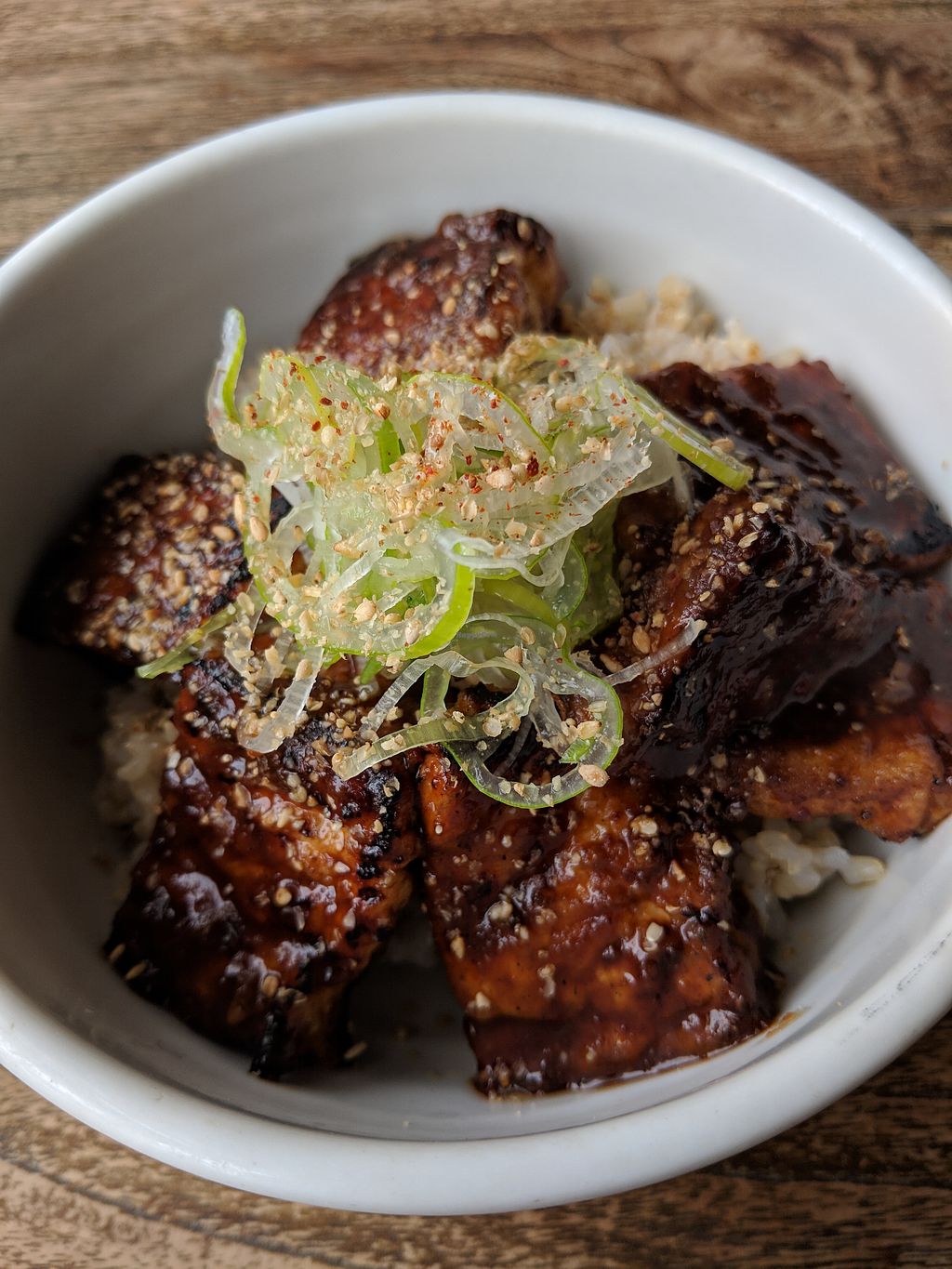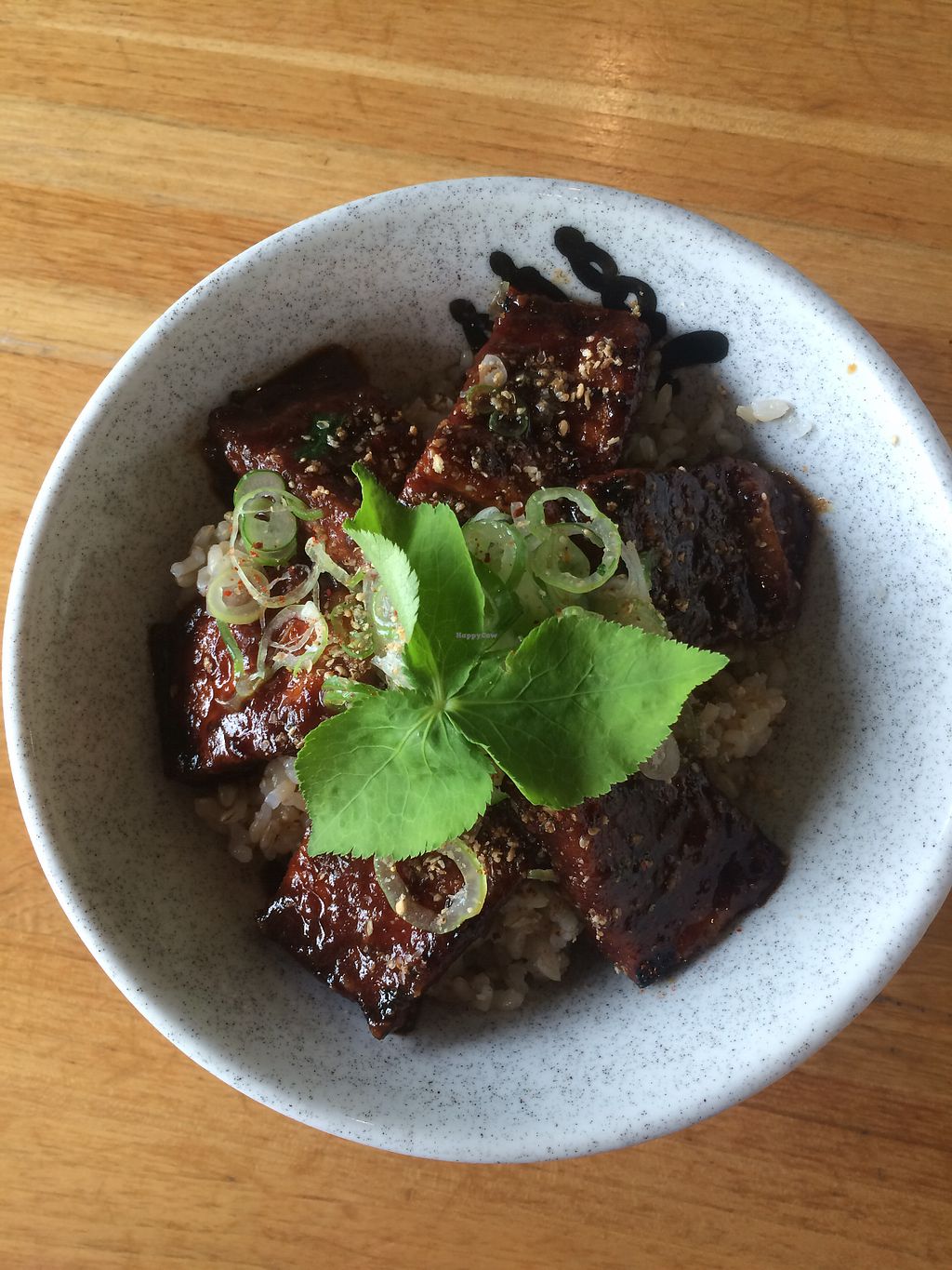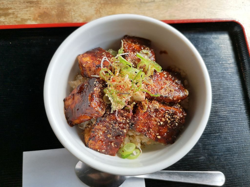 Charcoal-grilled deep fried tofu rice bowl. Size m 972 Y.