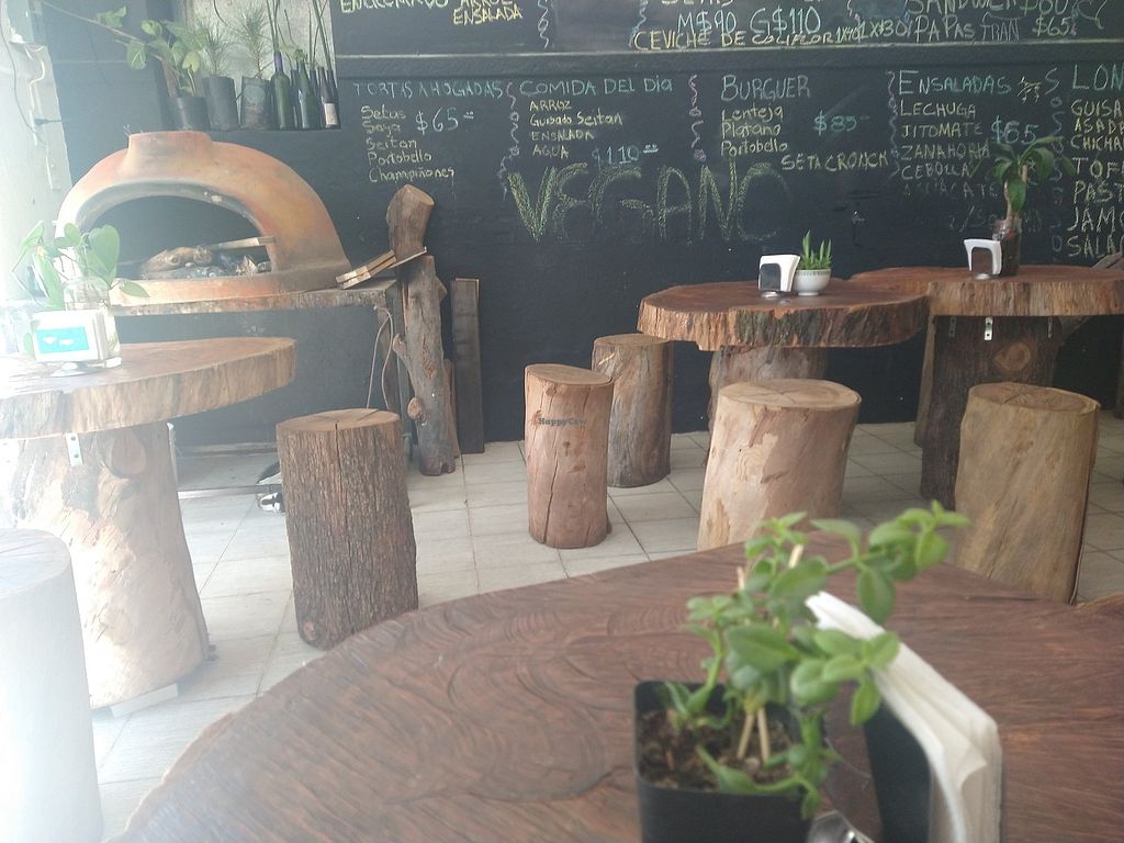 Serves vegan tacos, burgers, torta ahogada, salads, dish of the day and many more. A pleasant place with aromas from India and a background of relaxing mantras. Reported closed January 2025.