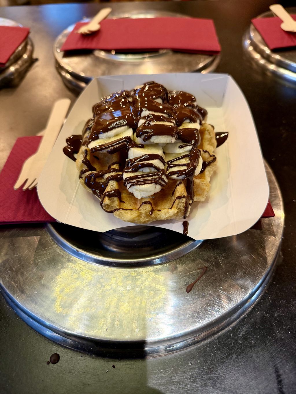 The waffle was good (nothing extra), different toppings to choose from. Location a bit weird though