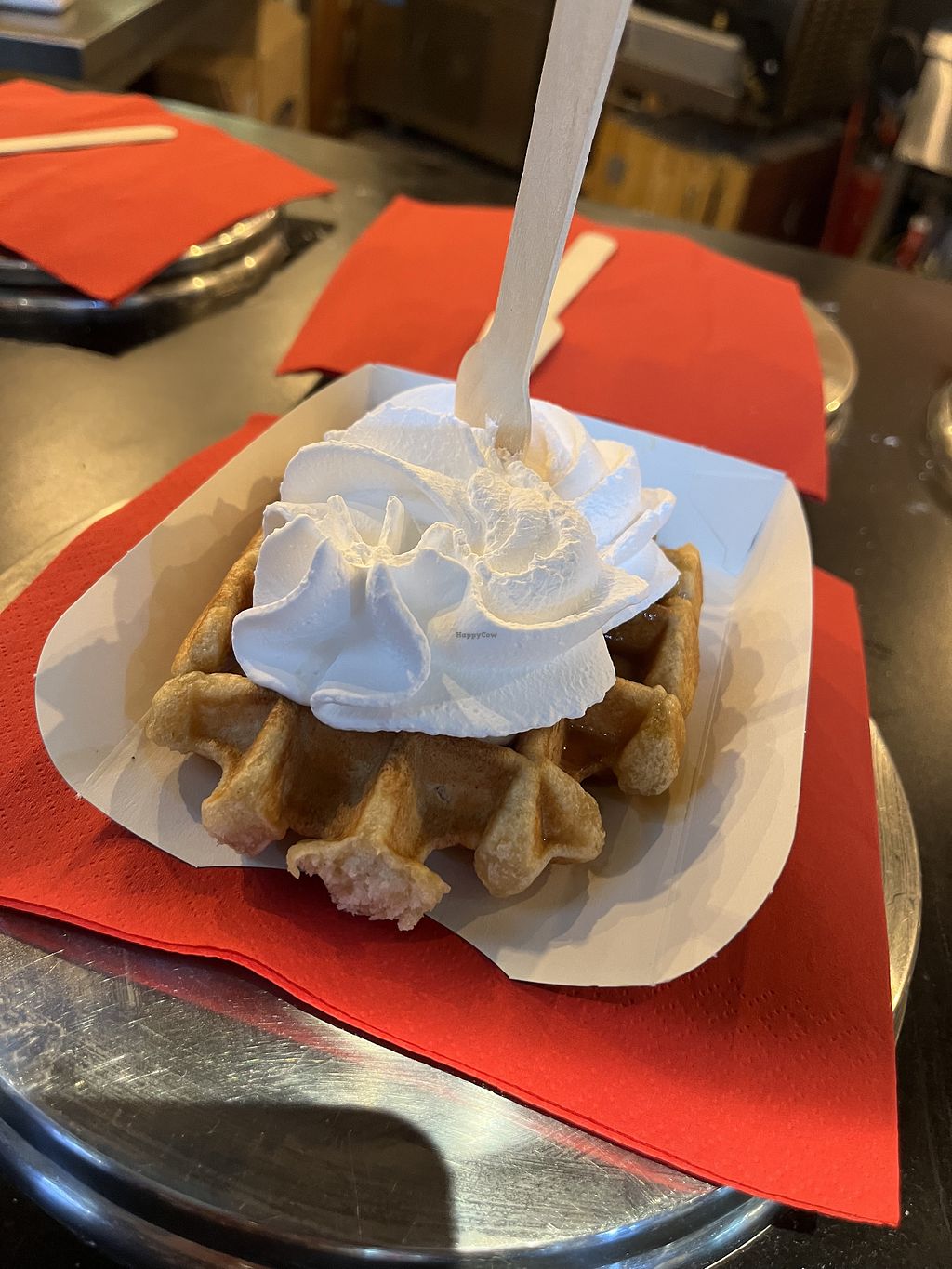 Vegan waffle 🧇, caramel & whipped cream plant 🌱