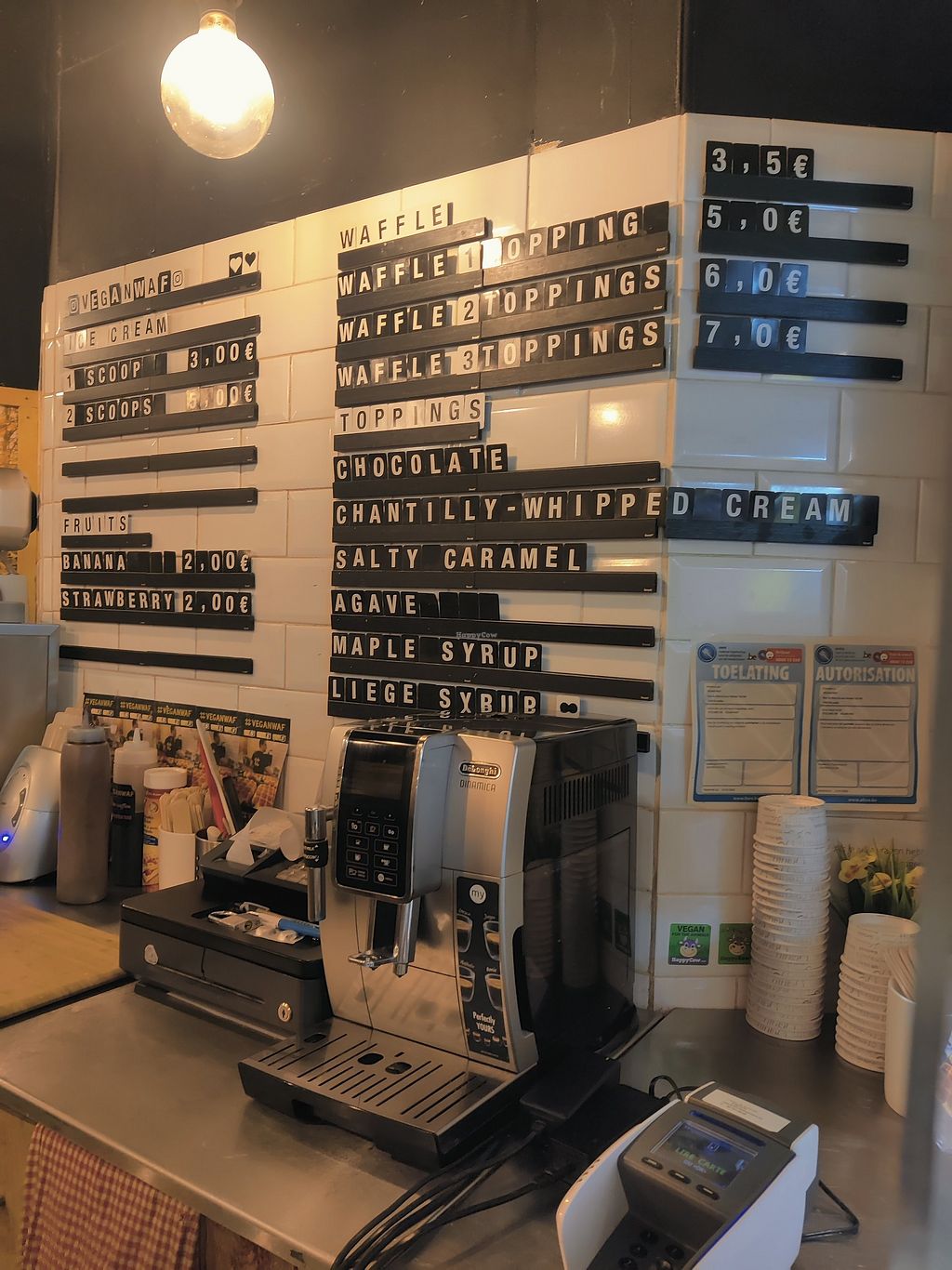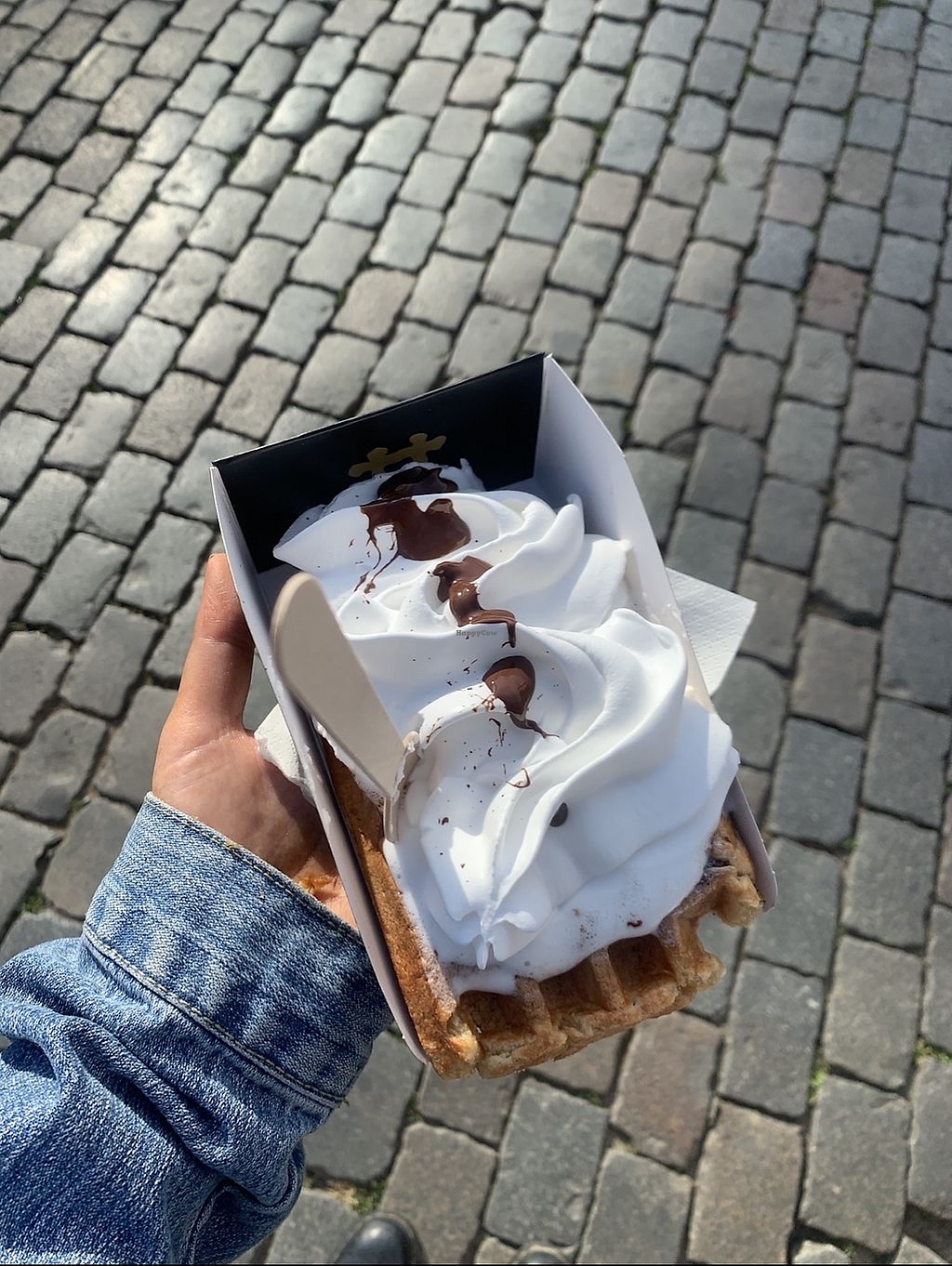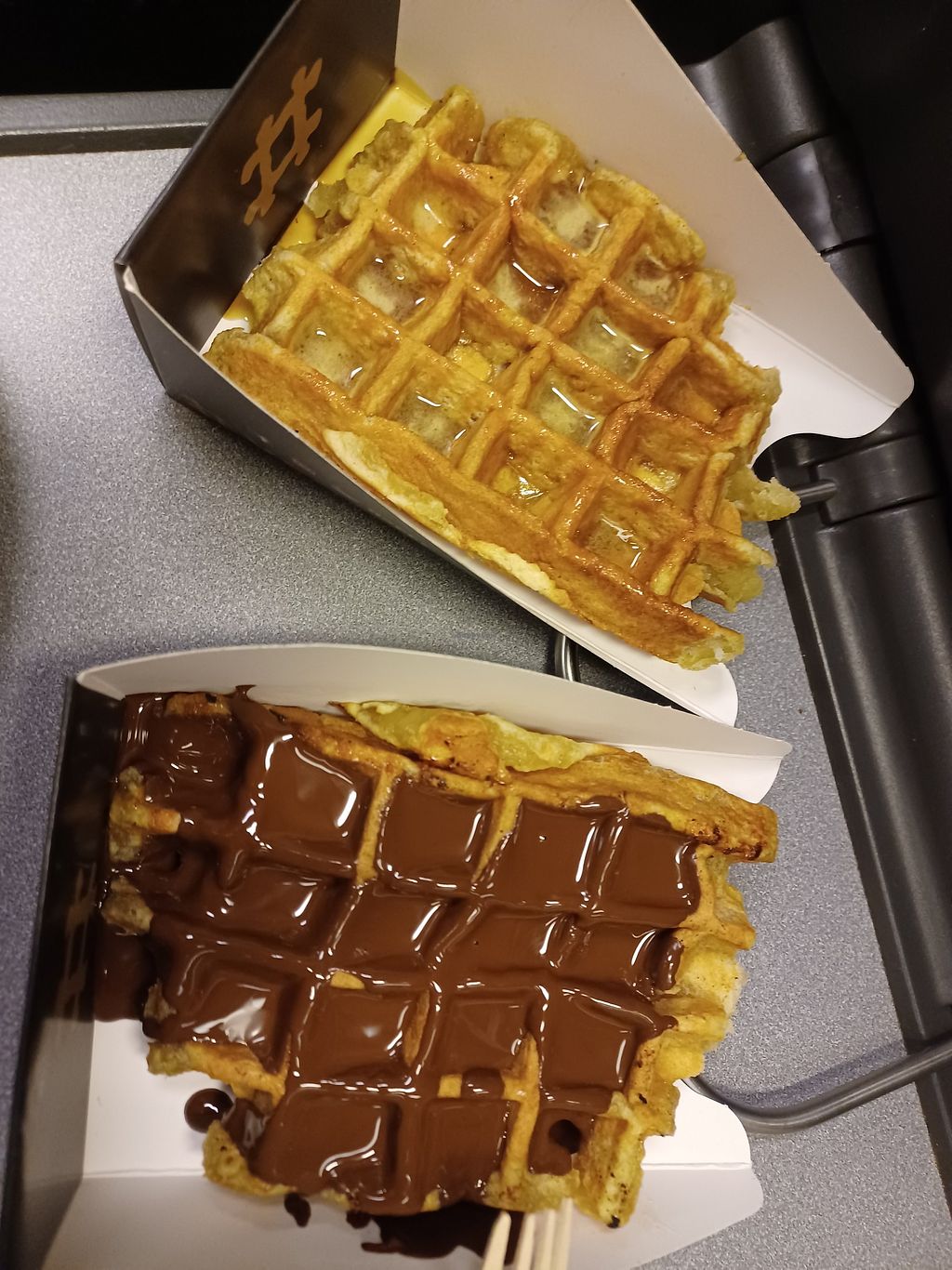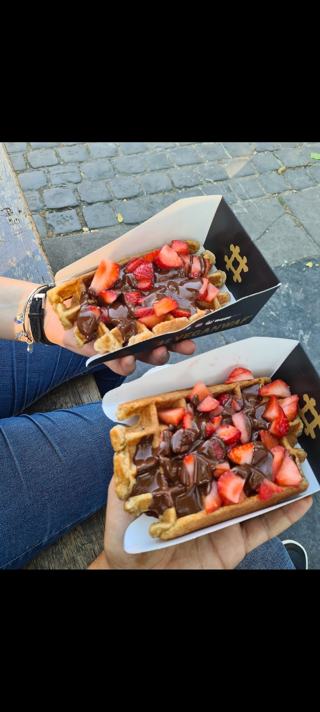 L: chocolate and Chantilly cream R: Liège sauce and strawberries