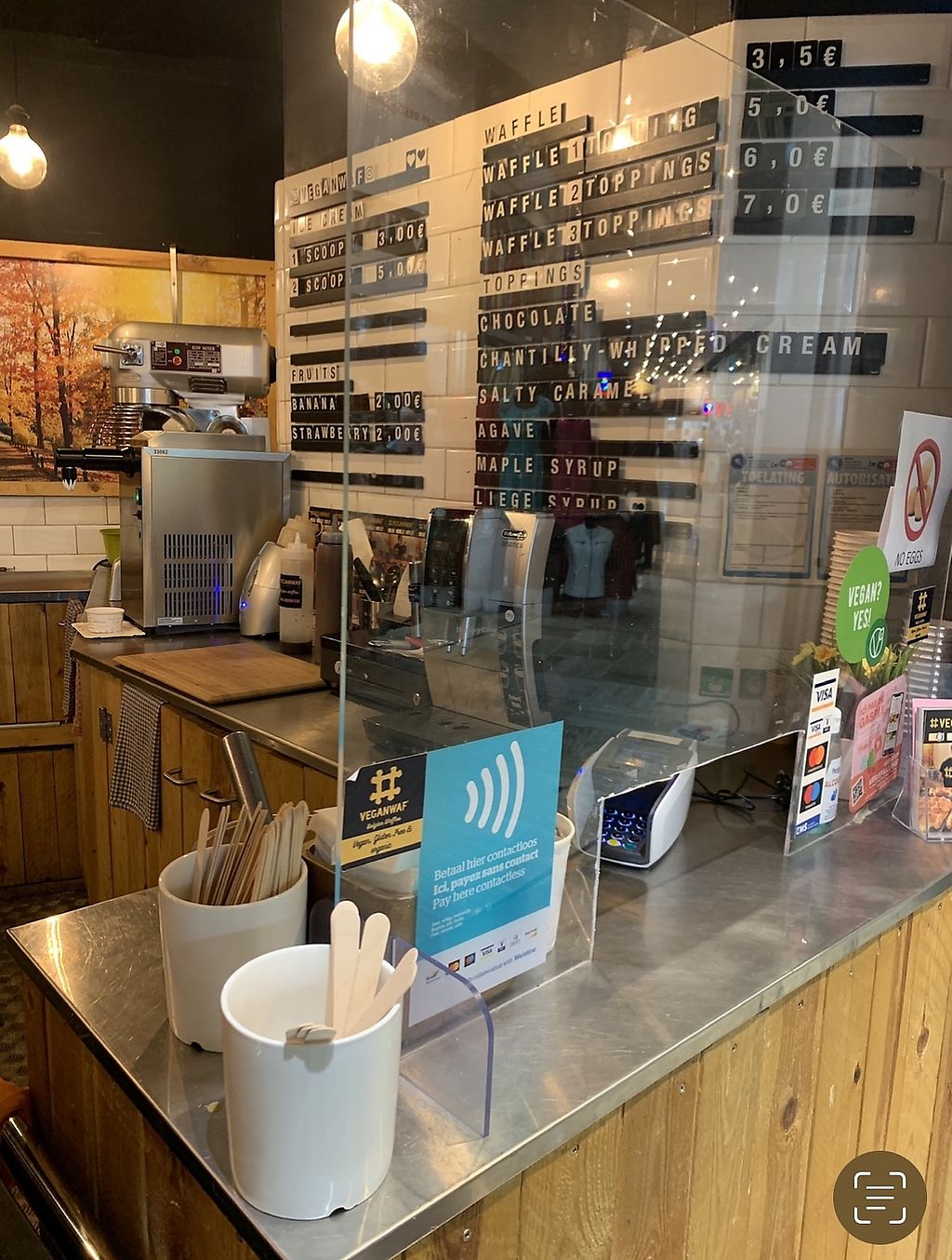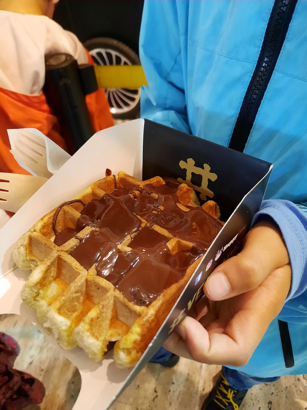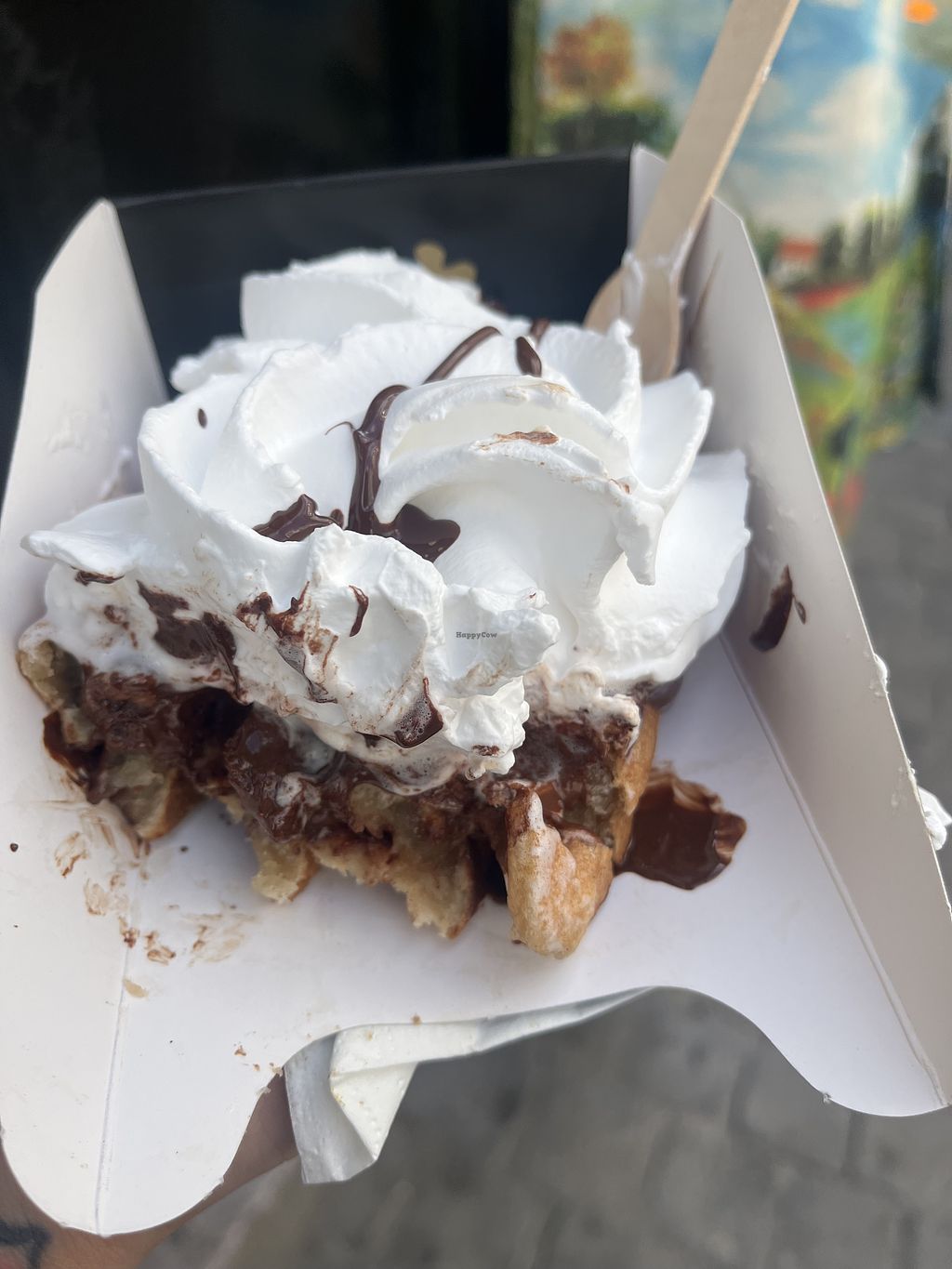 L: chocolate and Chantilly cream R: Liège sauce and strawberries