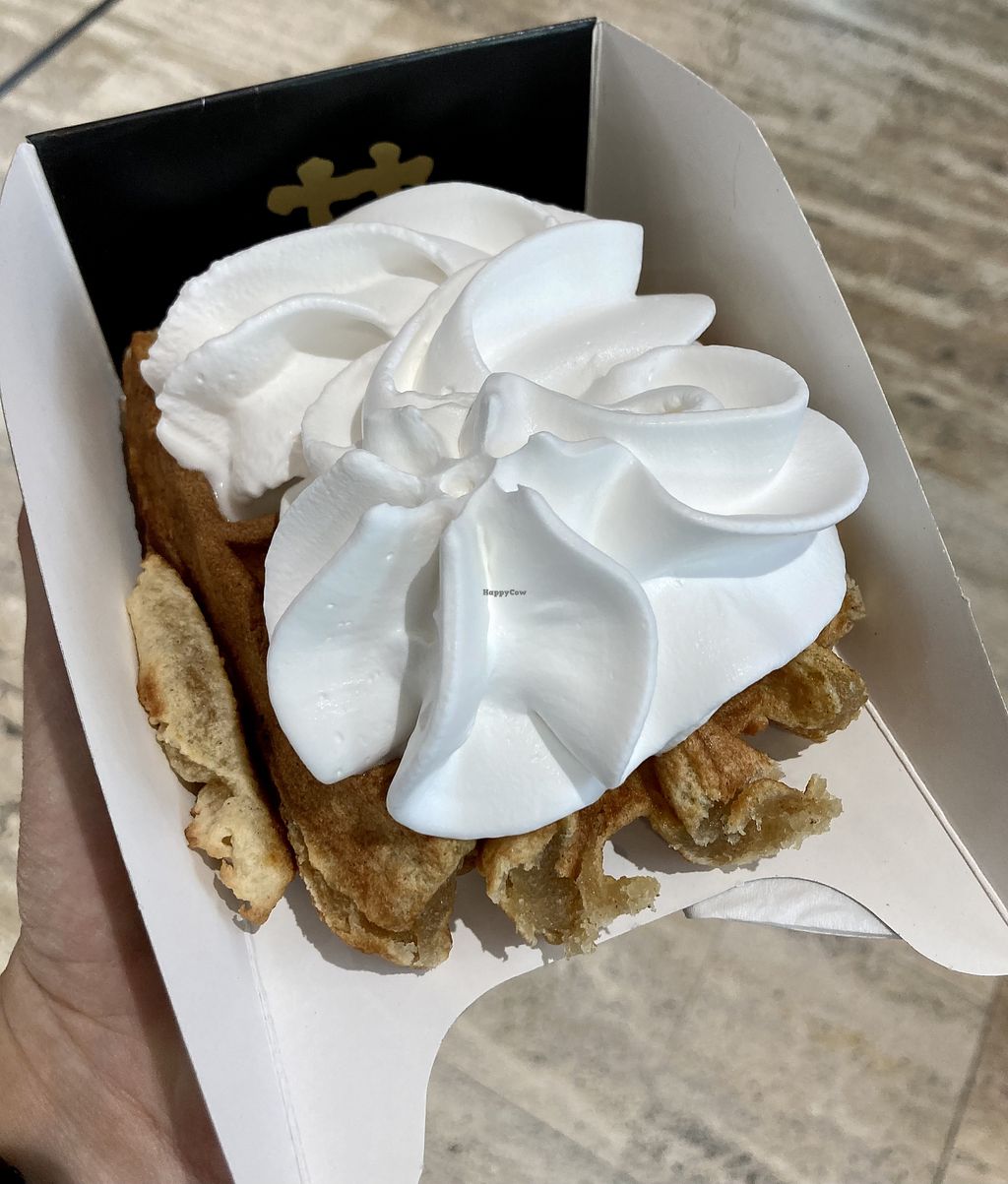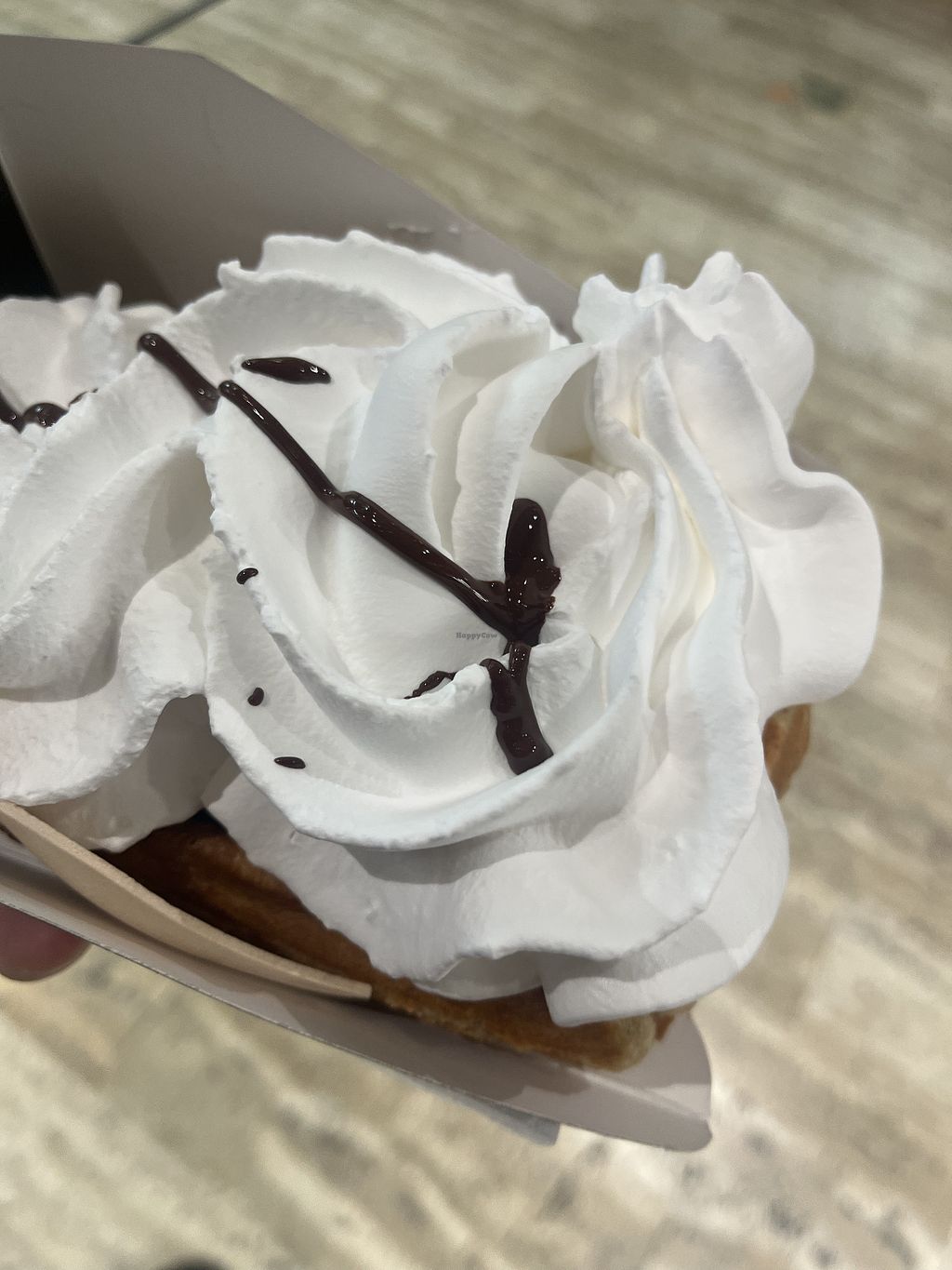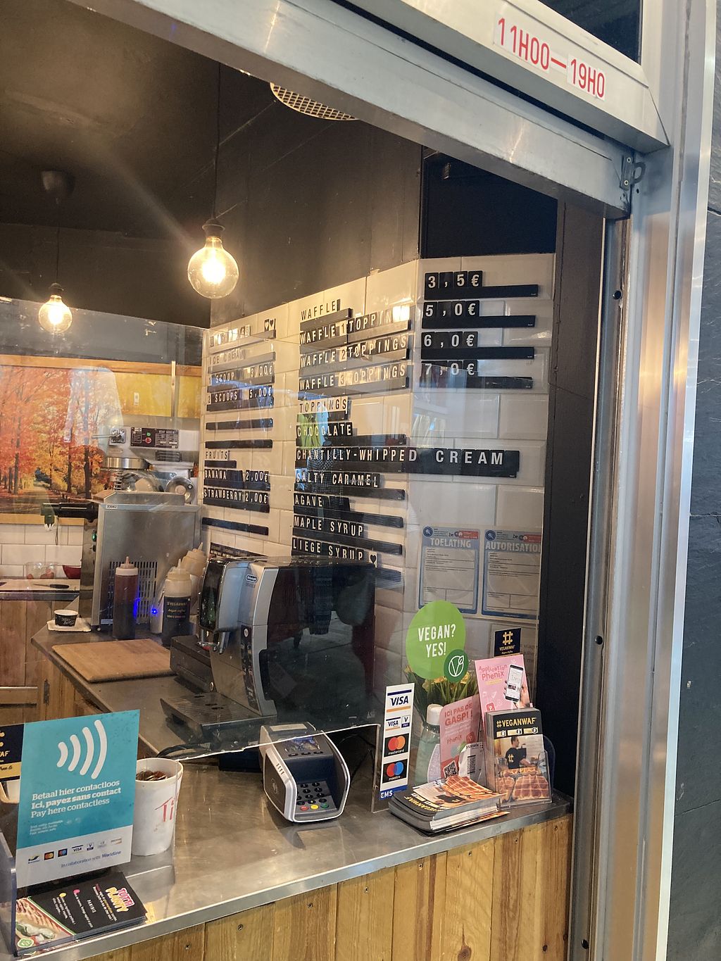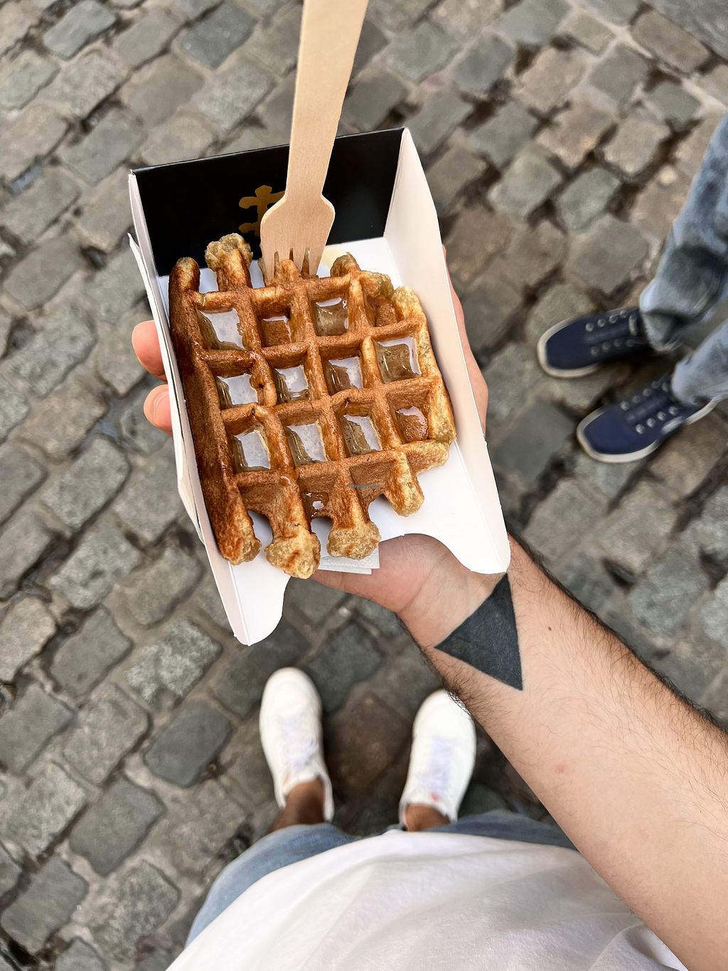 L: chocolate and Chantilly cream R: Liège sauce and strawberries
