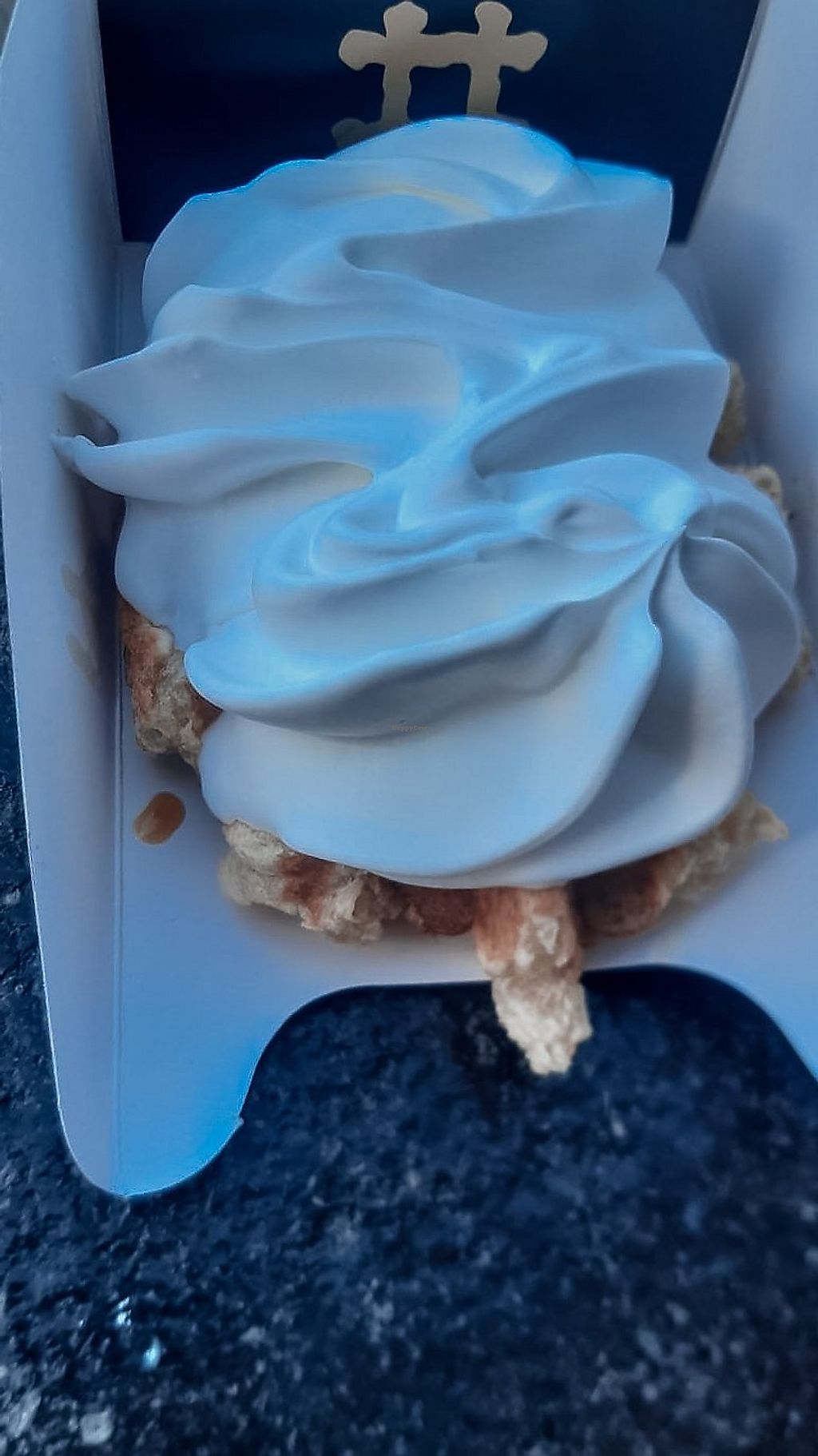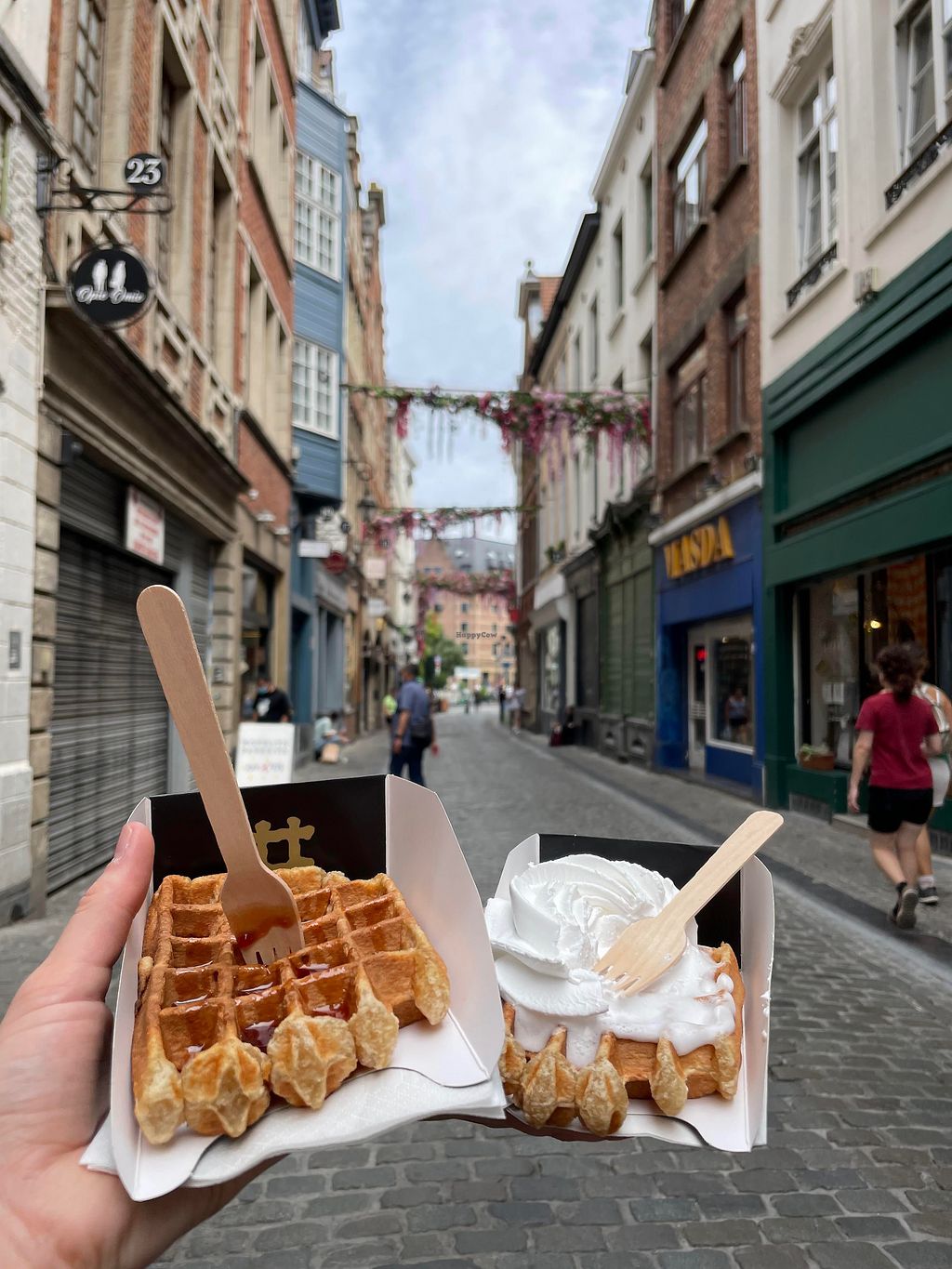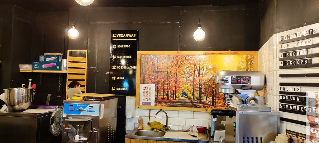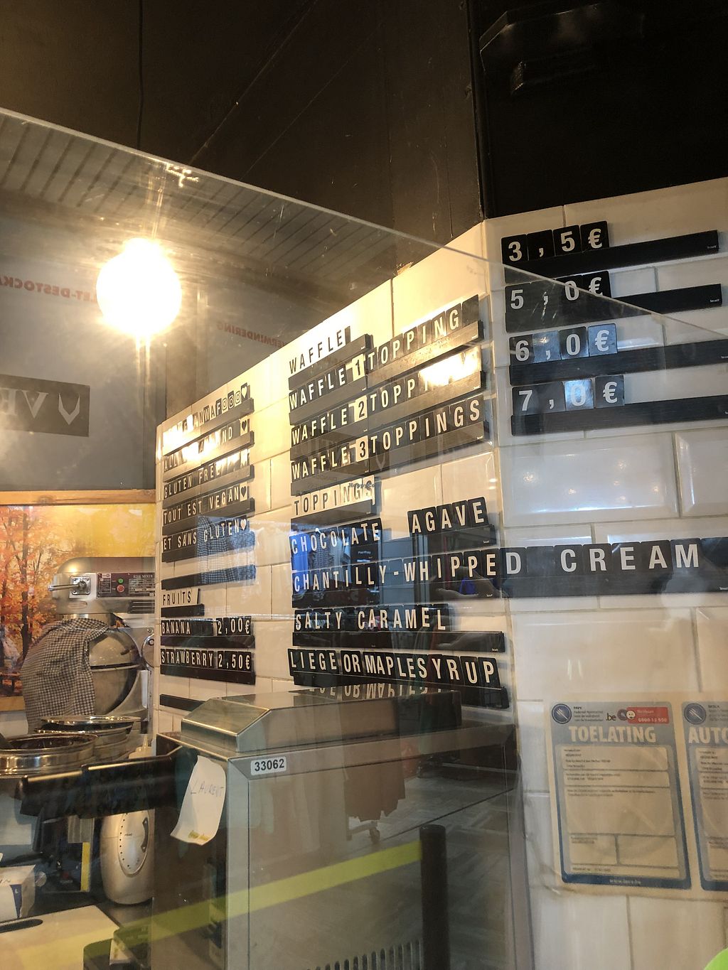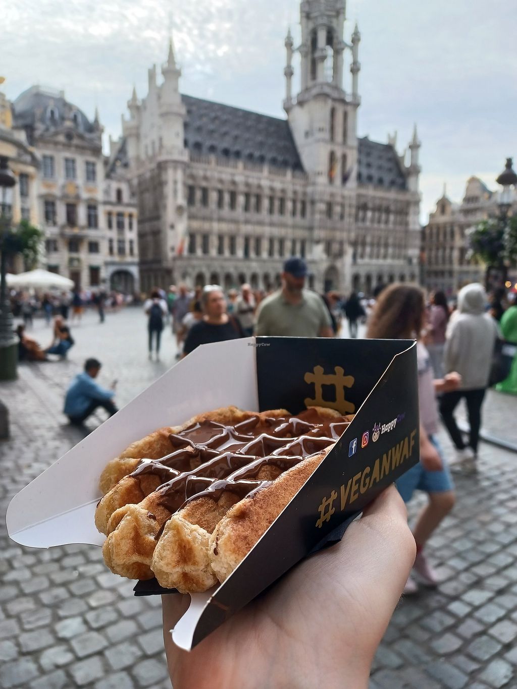 My waffle with banana and chantilly topping, NOTE HappyCOW Logo !!!!