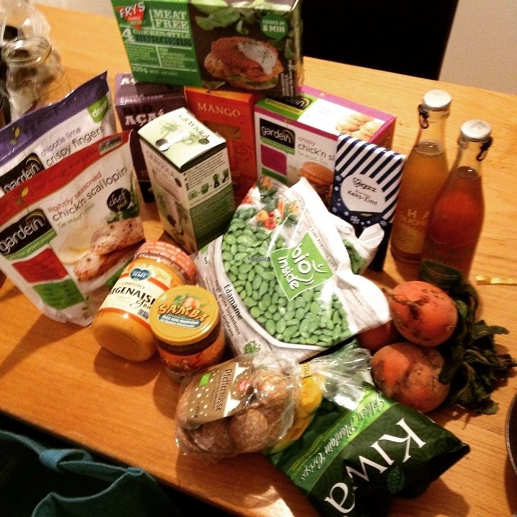 All the goodies! Lots of Gardein, kombucha, organic edamame, frozen sm…