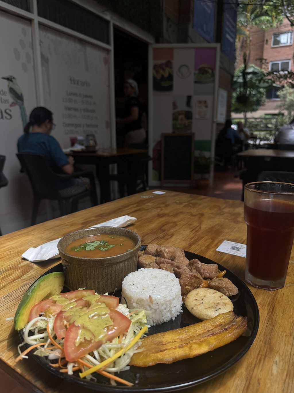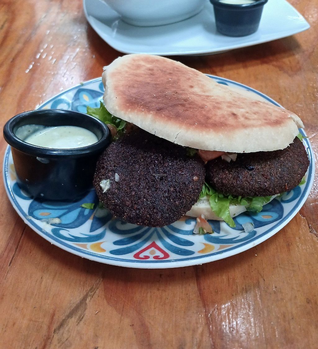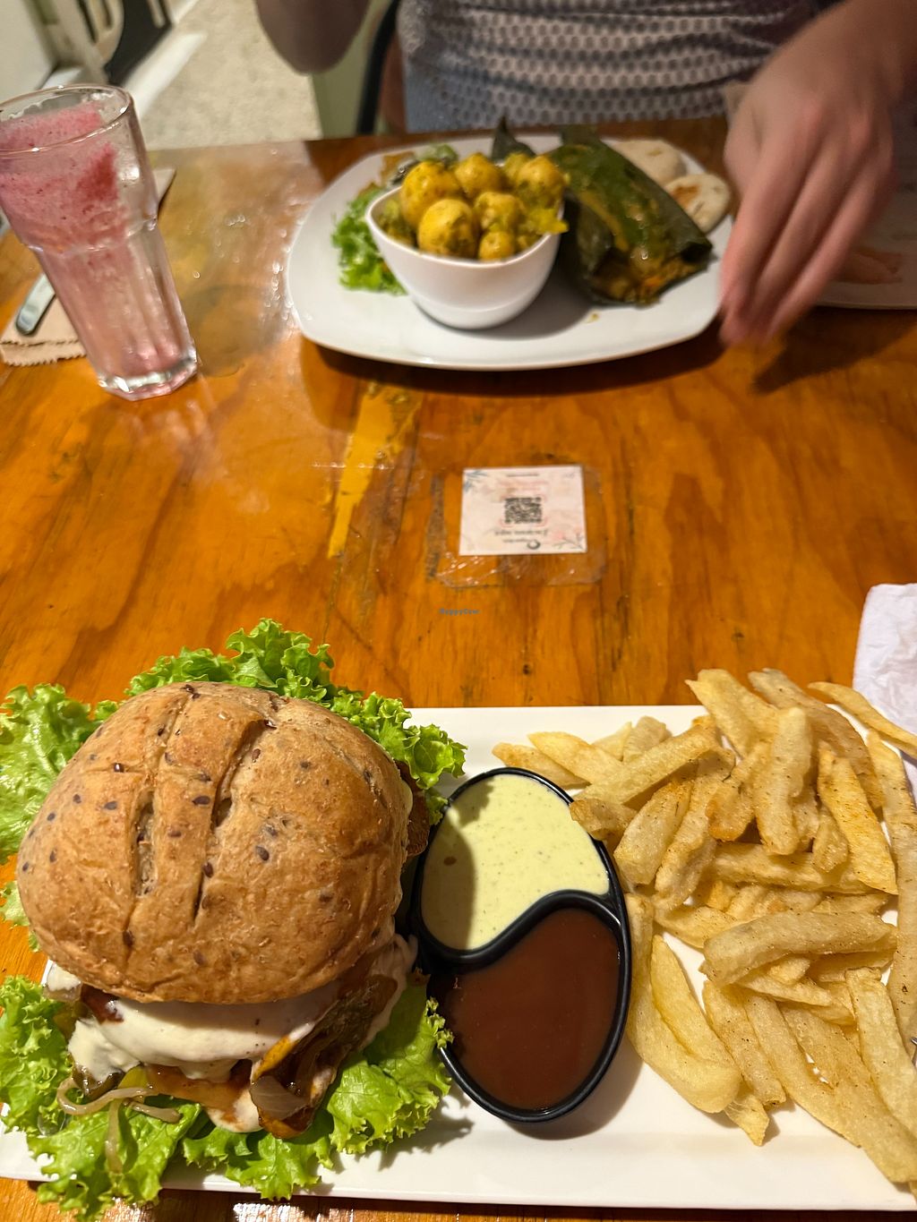 Hamburguesa Vegarden with fries, Tamal Criollo