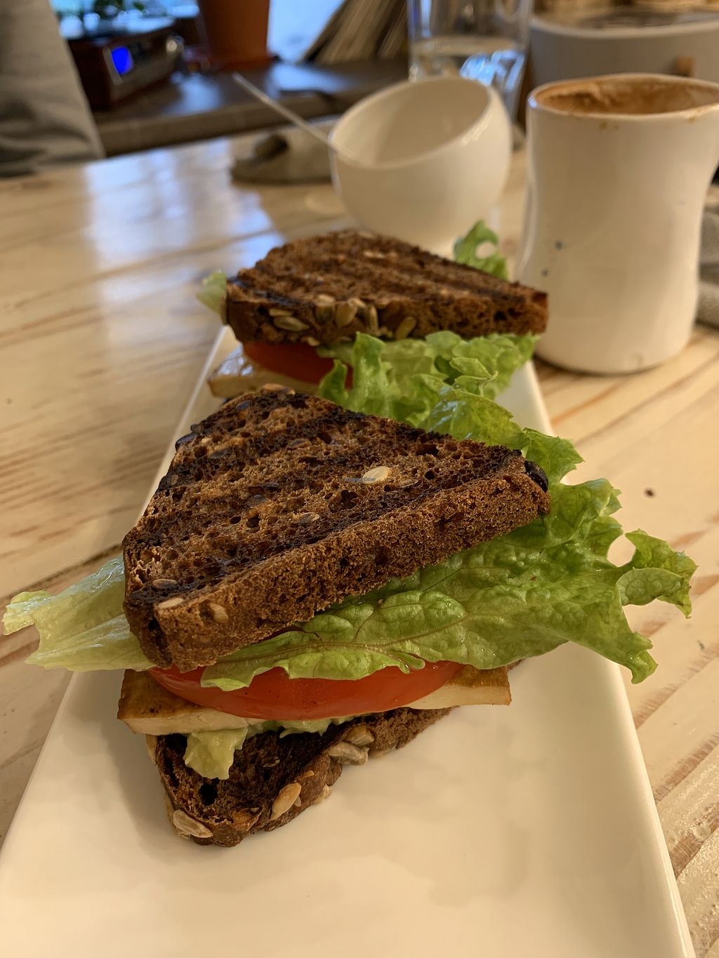 Всё начинается с приятного, уютного, стильного интерьера: книжные полки, композиции из дерева, мха, ламп, бокалов, много зелени и винила, велосипед, проигрыватель для пластинок, где можно выбрать любую по вкусу и запустить. А дальше богатейшее меню: целая страница рождественских предложений (среди которых безусловный лидер - мягкая и сочная сейтановая отбивная по-французски с нежнейшим пюре), разные виды салатов, горячих основных блюд, закусок, ланчей, десертов. И всё из того, что мы попробовали - невообразимо вкусно! А ещё тут есть возможность купить посуду, которая понравилась, купить еду в виде полуфабриката, чтобы приготовить дома, заказать еду сразу на сайте, раз в месяц приготовить любимое блюдо и дополнить им меню, и раз в месяц послушать тематические лекции от интересных личностей. Большое спасибо активному и приветливому официанту и поварам на кухне! Желаем вам процветания и обязательно будем к вам заглядывать в наших львовских поездках!
