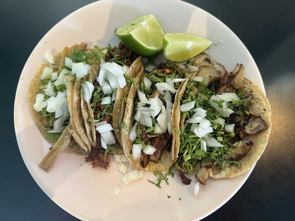 Vegan yea. Delicious yes. Healthy? Oh no no. Greasy tacos, quesadillas, burritos, and more. Various options from tempeh to beyond to soy and oyster mushrooms. Open early on weekends for brunch now too and has wonderfully fluffy pancakes, chilaquiles, breakfast burritos, coffee and pastries. Think it sources pastries from a vegan-friendly bakery in town and the pain de chocolate is flaky and fresh. Nice setting too in an open courtyard.